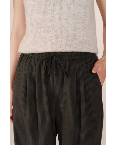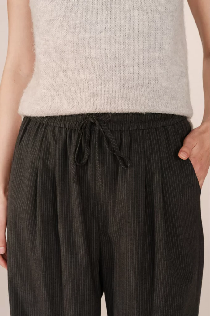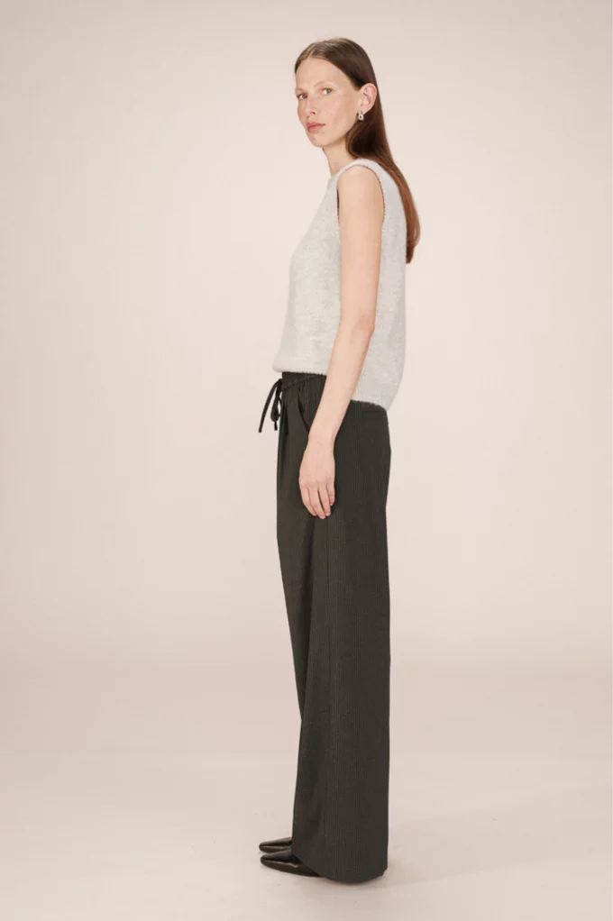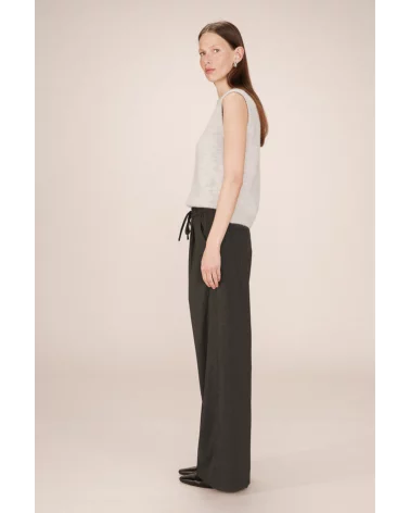 Un basique revisité avec une touche tailoring ! Le pantalon Stay affiche une coupe large et une taille élastiquée pour un confort optimal, dans un tissu gris chiné au tomber parfait. Idéal pour un look preppy ou une silhouette minimaliste. Allez hop dans la box !