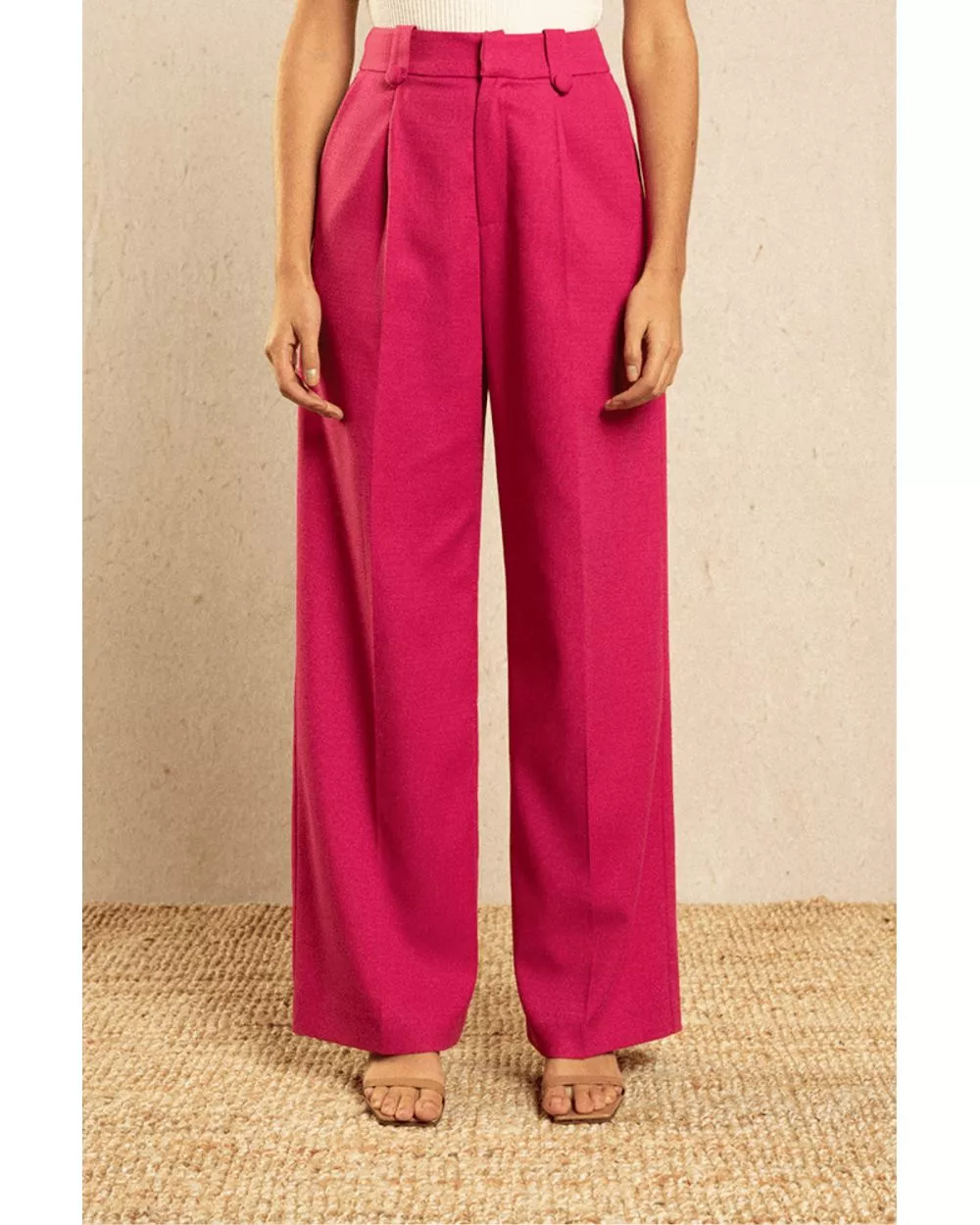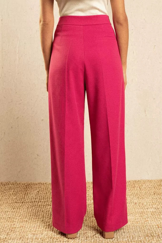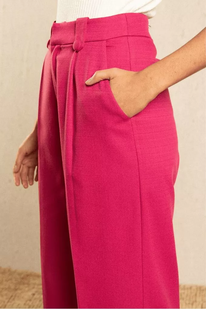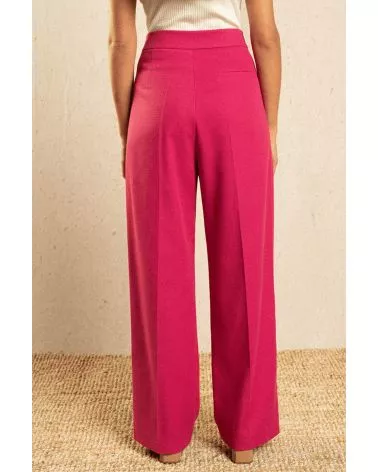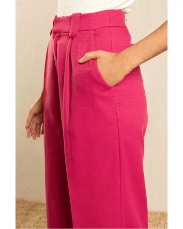 Le pantalon Irvine pivoine est un pantalon large à plis. Il est ajusté à la taille et vient dessiner la silhouette.
