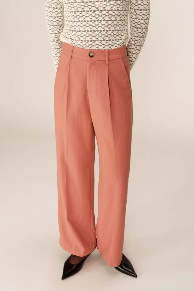 Laissez-vous séduire par le pantalon Pierre Terracotta, une pièce intemporelle qui conjugue élégance et aisance .