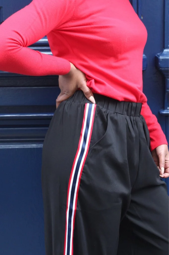 Le pantalon Louis est la pièce parfaite pour un look alliant confort et élégance. Son design fluide et sa taille élastique offrent une liberté de mouvement incomparable, tandis que la bande latérale tricolore apporte une touche sportive et tendance. Que ce soit pour une journée décontractée ou un look streetwear chic, ce pantalon s’adapte à toutes vos envies. Associez le à un top ajusté ou un pull oversize pour un style moderne et effortless. Allez hop, dans la Box !
