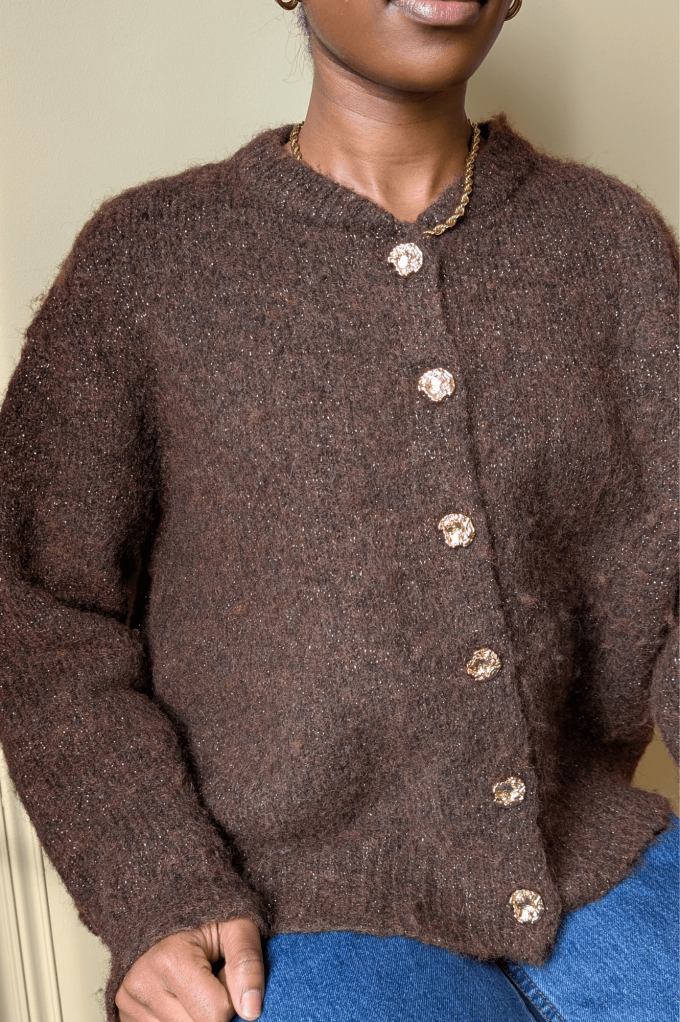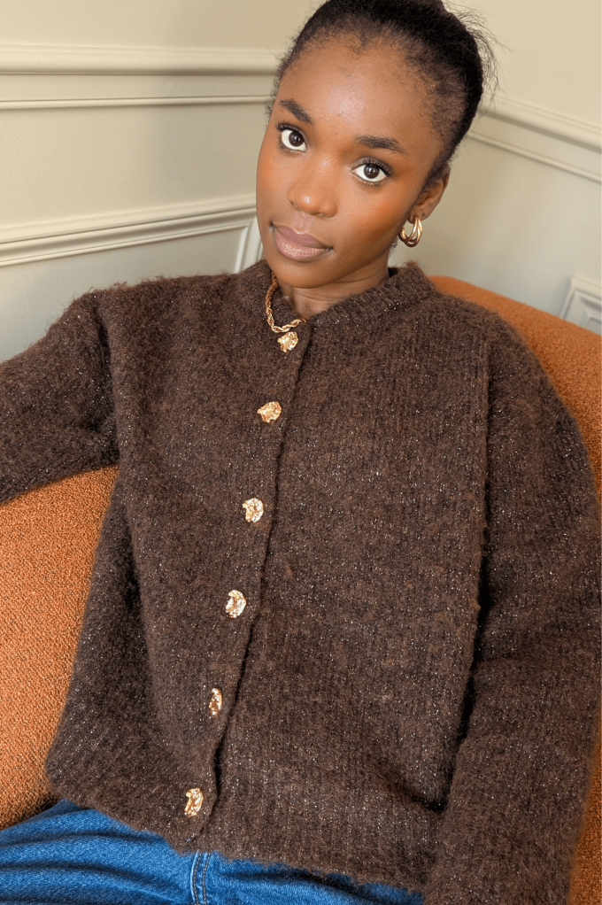 Sa teinte brun châtaigne réchauffe la silhouette.  Avec son tombé souple et sa texture douce, il incarne la féminité discrète et affirmée celle d’une femme Possible. À porter seul sur la peau ou superposé à une chemise blanche, pour une élégance simple et sans effort. Associez Tendre à un pantalon taille haute ou une jupe midi en laine pour une allure automnale aussi douce qu’assurée. Plus d'hésitation, hop dans la box.