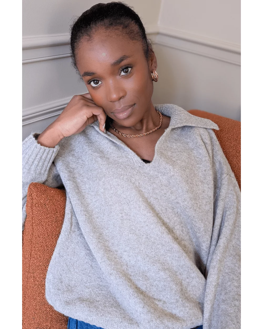 Une maille chaude et moelleuse, un col large subtilement ouvert, une allure simple mais pleine d’assurance.