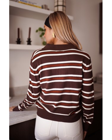 Le polo Tempera signé In April revisite le style rétro avec modernité. Sa maille fine et douce, ornée de rayures marron, écrues et bordeaux, apporte une touche vintage irrésistible à vos tenues du quotidien. Ce top s’accorde aussi bien avec un jean taille haute qu’une jupe droite pour un look casual chic à la fois structuré et féminin. Allez, hop dans la box.
