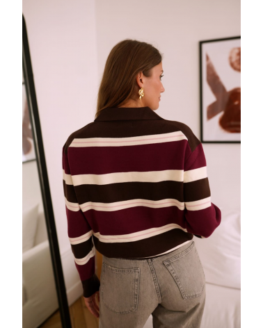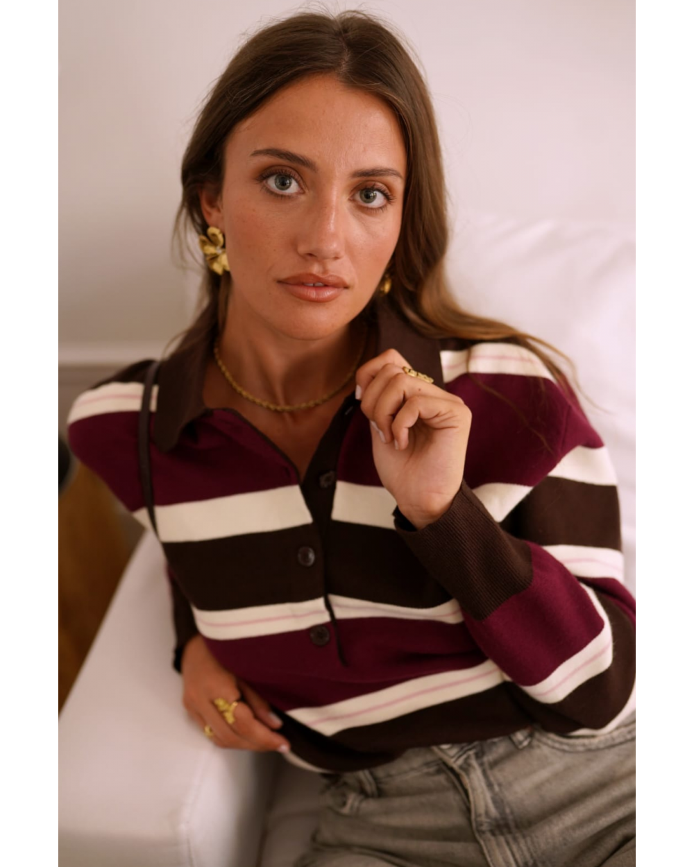 Le Polo Teyana revisite le style sportif chic avec une touche de féminité. Ses rayures bordeaux et blanches lui confèrent une allure à la fois rétro et moderne, parfaite pour une tenue élégante mais décontractée. Confectionné dans une matière douce et respirante, ce polo à manches longues est idéal pour la mi-saison. Les boutons sur le col ajoutent une note raffinée, pour un look à la fois classique et tendance. A louer absolument !