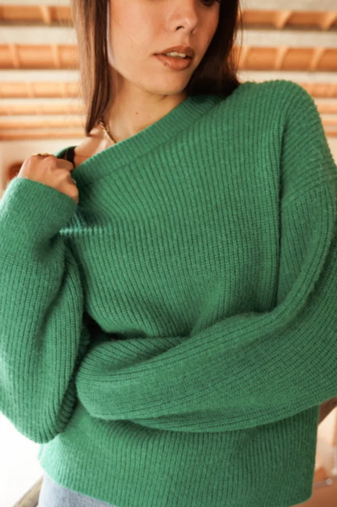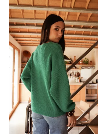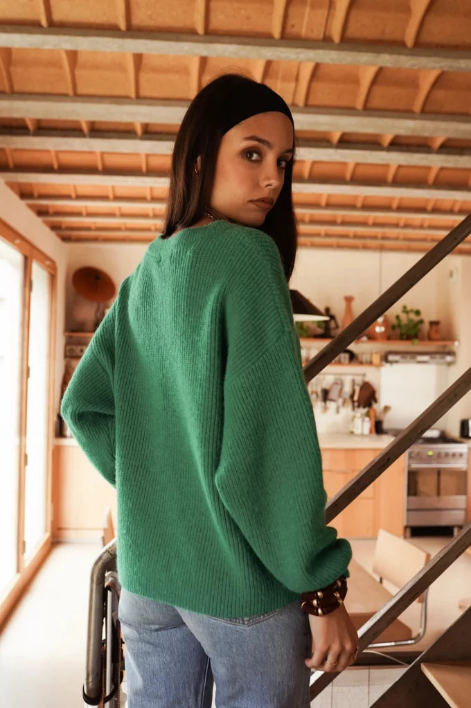 Le pull Yrma mise sur la couleur pour apporter énergie et chaleur à votre garde-robe hivernale. Sa maille épaisse et moelleuse enveloppe tout en douceur, tandis que son vert vibrant illumine instantanément vos tenues.