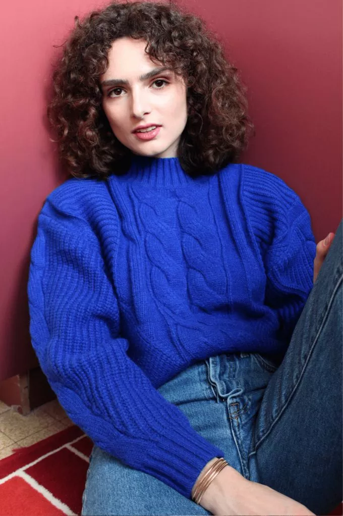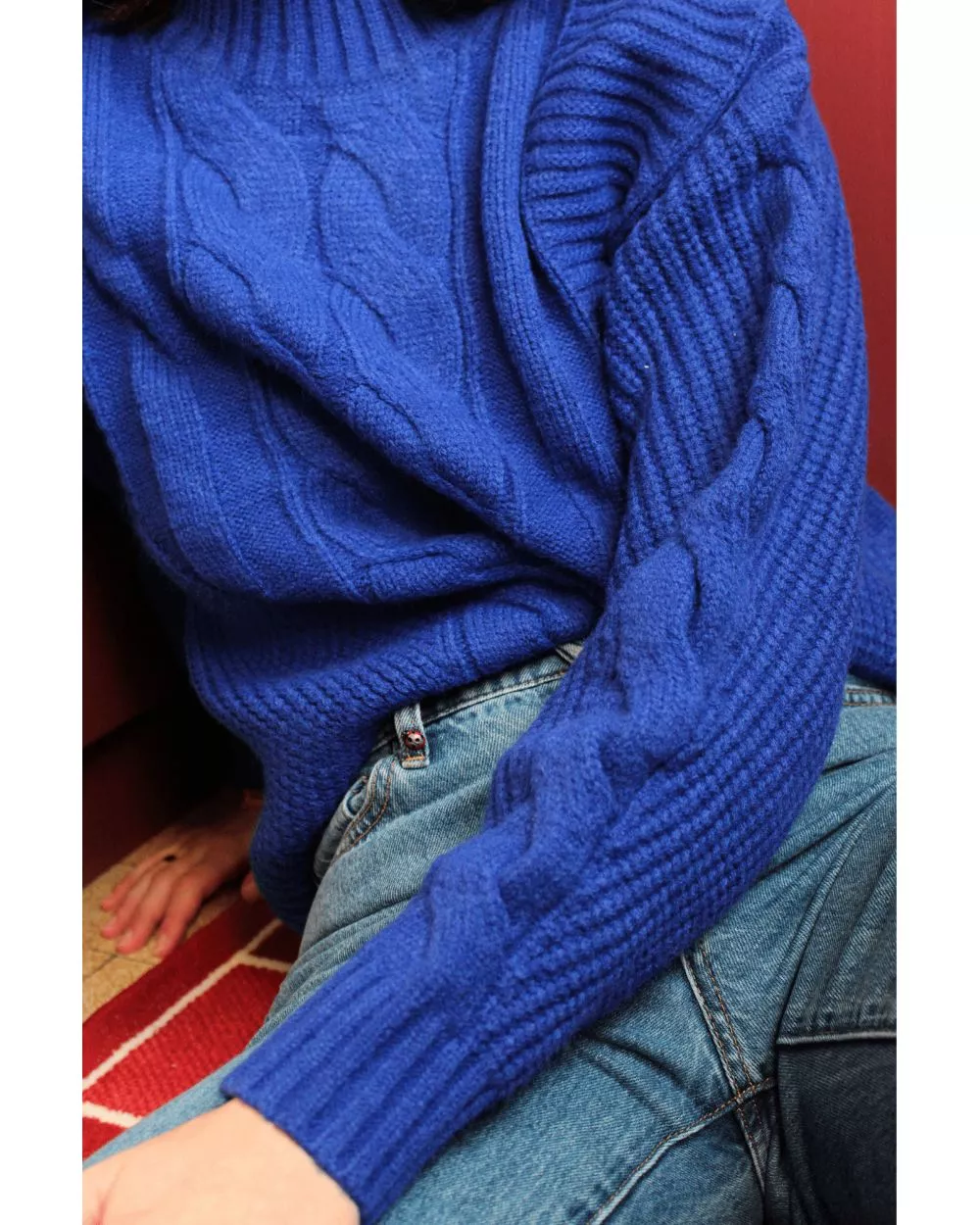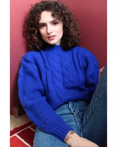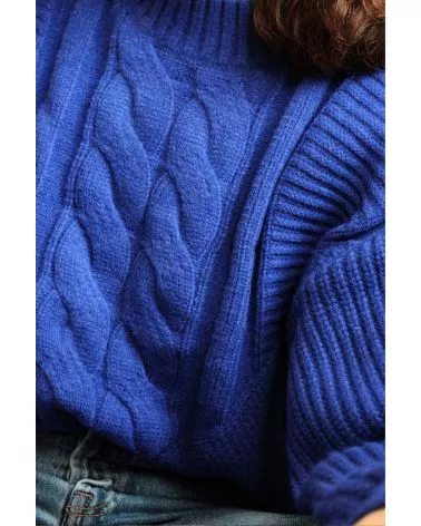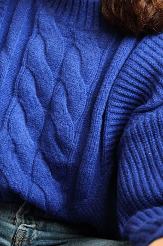 Le pull Lior bleu amènera de la couleur dans vos hivers. Ses multiples torsades créent son unicité ! Un favori de la Team Possible, il faut le louer !