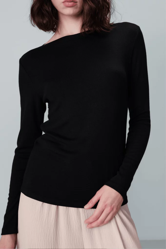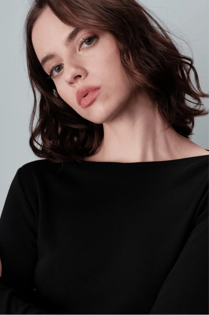 Adoptez une allure épurée et sophistiquée avec le pull léger noir Nous. Conçu pour offrir confort et style, il sera un essentiel polyvalent pour votre garde-robe. Louez-le !