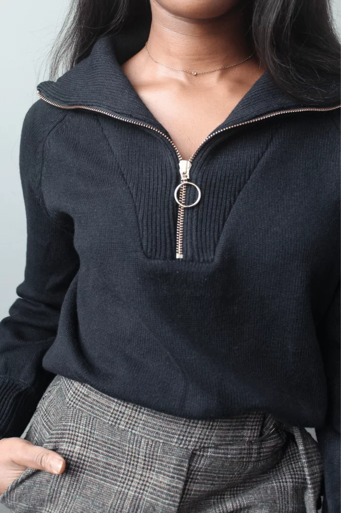 Léon, un pull camionneur kaki, est un incontournable de la saison grâce à sa maille chaude et son col haut. Son plus, la fermeture à glissière de couleur or qui apporte la touche finale. À louer pour vos looks d'hiver !