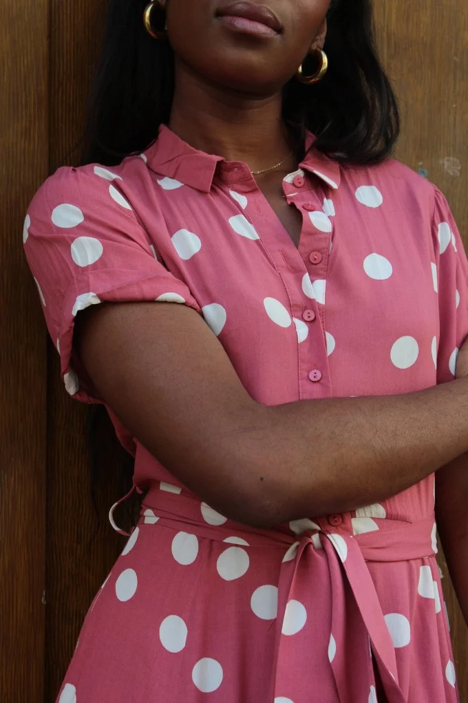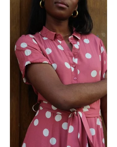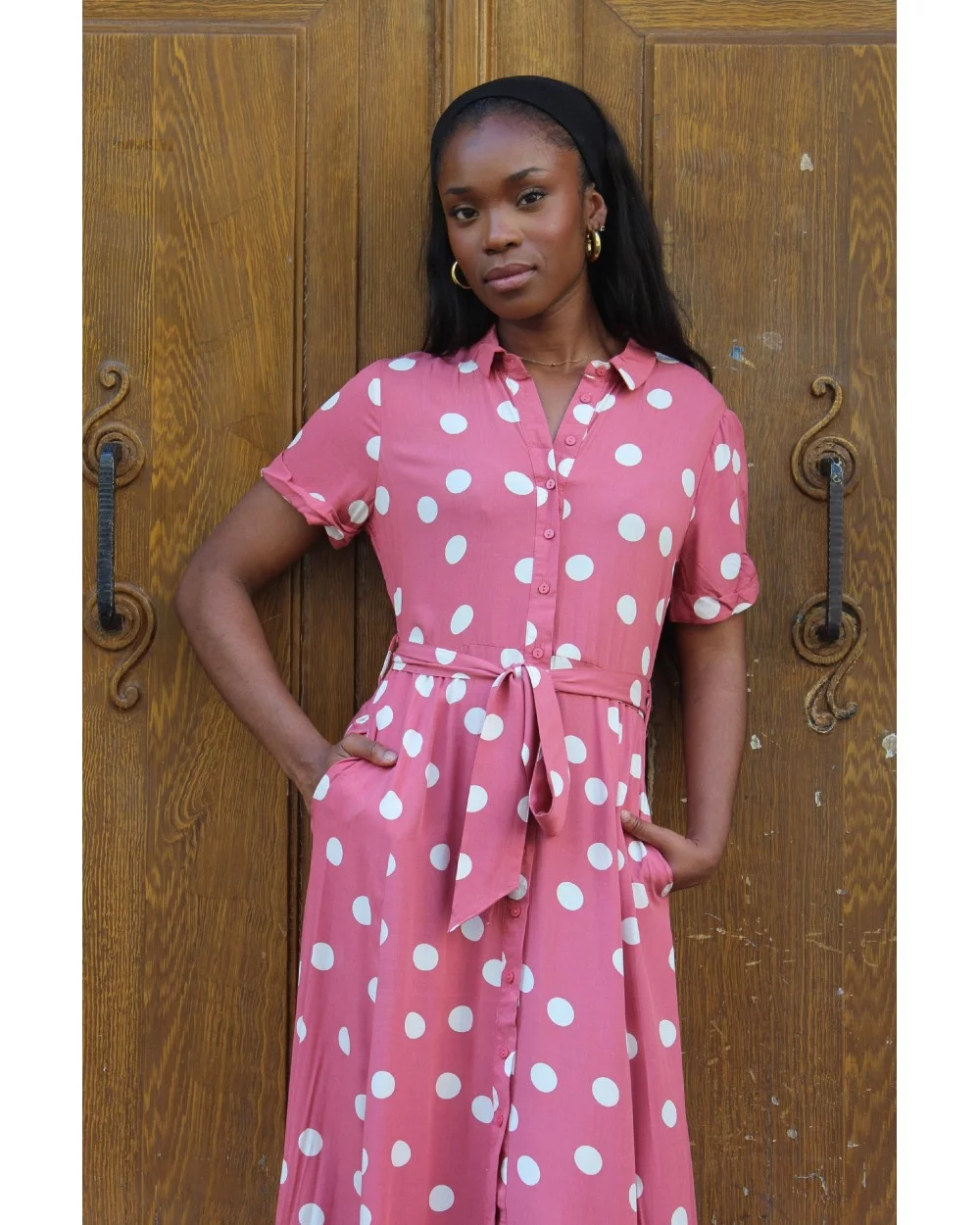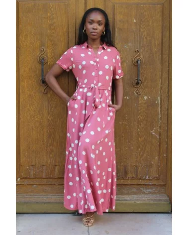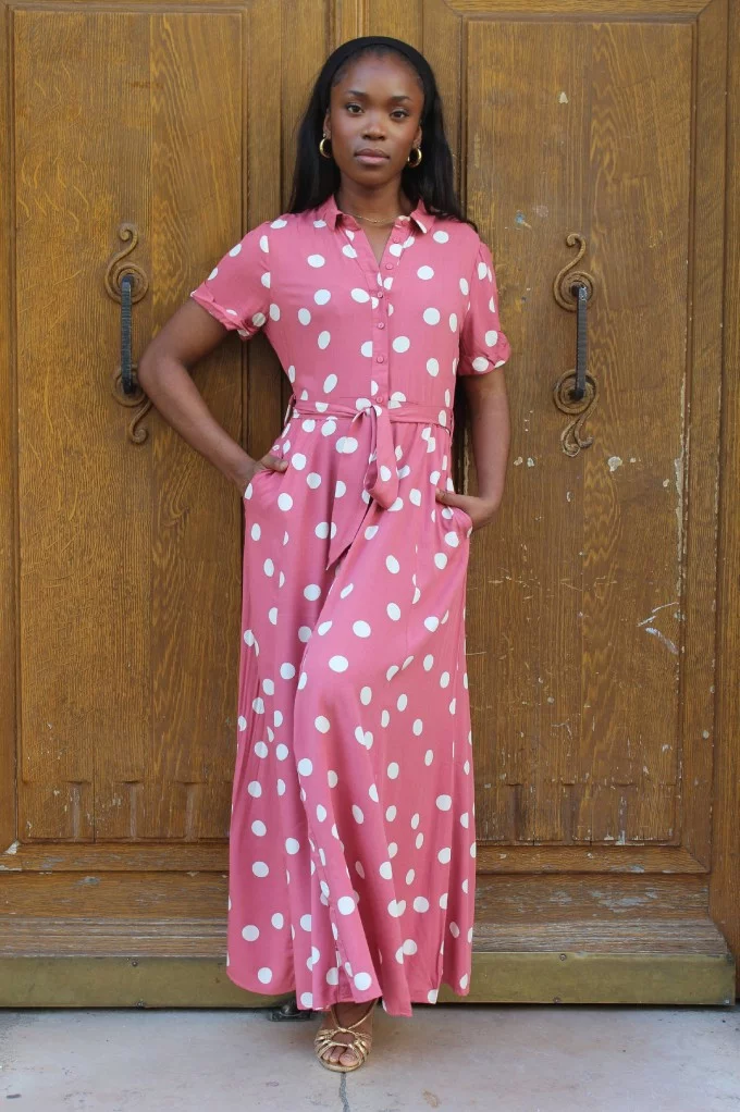 La robe Rose – élégante et légère pour l’été avec sa coupe longue, ses pois blancs et sa ceinture à la taille, cette robe rose est un véritable coup de cœur de saison. Ses manches courtes et son tissu fluide offrent un confort idéal pour les journées ensoleillées tout en sublimant votre silhouette.