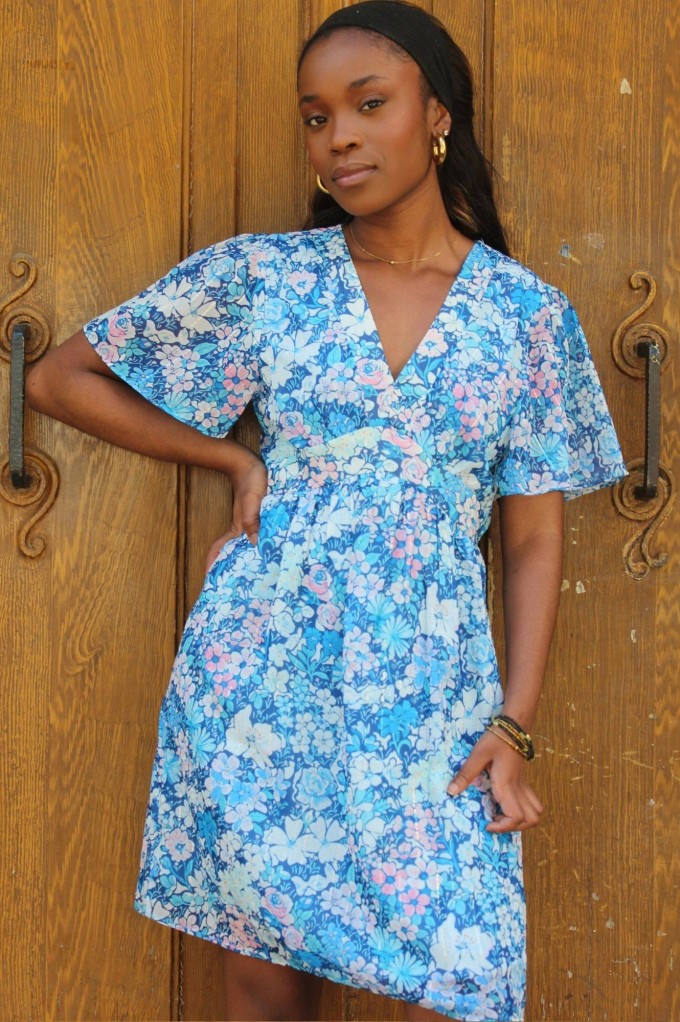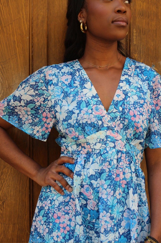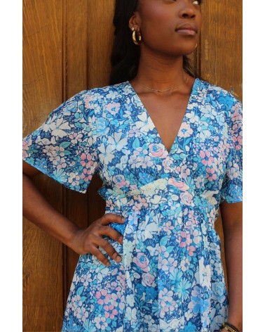 Avec son imprimé fleuri délicat dans des tons bleus, elle offre une alternative tout aussi fraîche et élégante que sa version rose. Sa coupe courte et fluide sublime la silhouette tout en garantissant confort et légèreté. Parfaite pour les grandes occasions estivales.