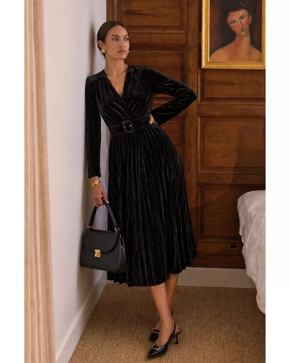 • Robe longue en velours noire