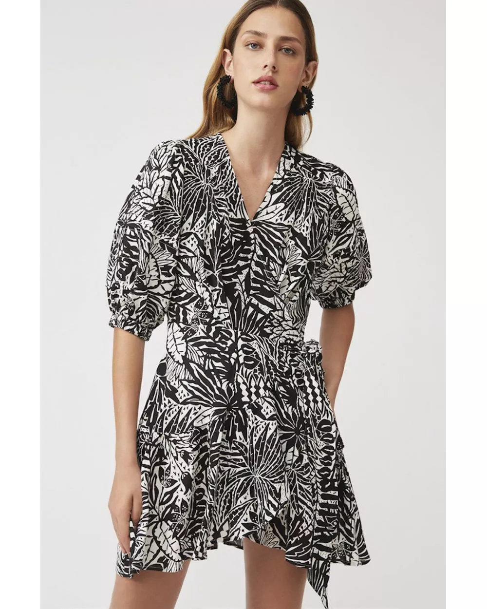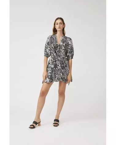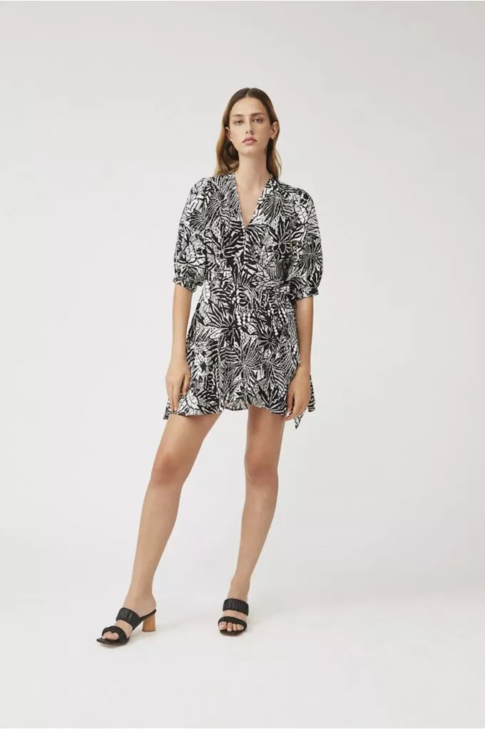La robe Cosima est aussi douce que légère. Cosima est imprimée zébré, noir et blanche avec manches 3 quart et noeud sur le côté. Louez-la pour un look élégant et de tous les jours.