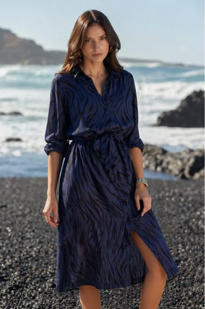 L'imprimé zèbre donne à cette robe à la forme plutôt classique un style très tendance et féminin. A porter avec une paire de bottines ou d'escarpins.