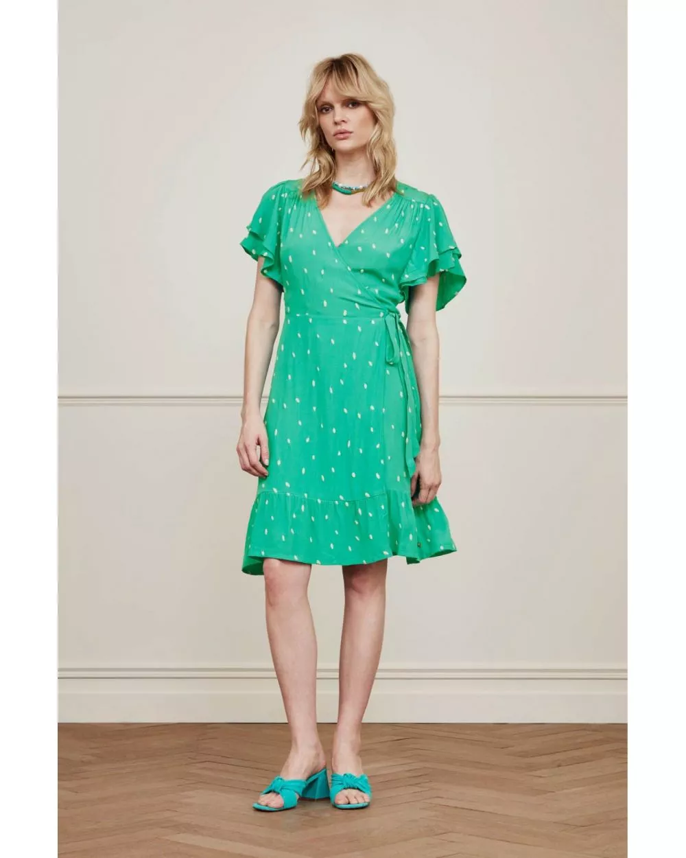 Le modèle mesure 1m76 et porte une taille 36.