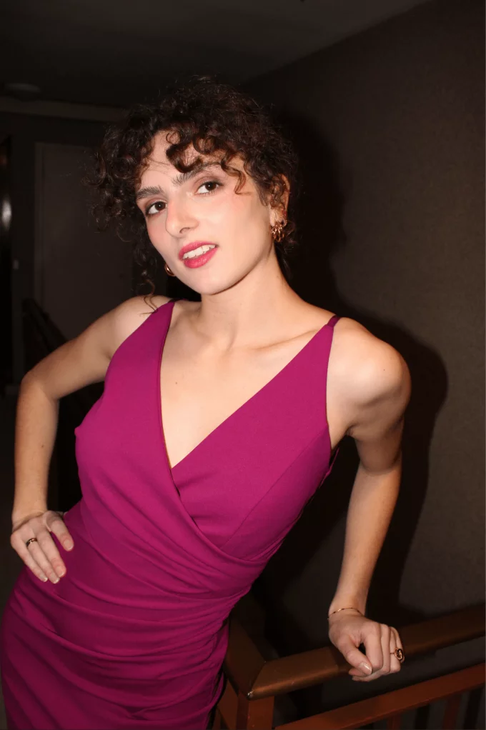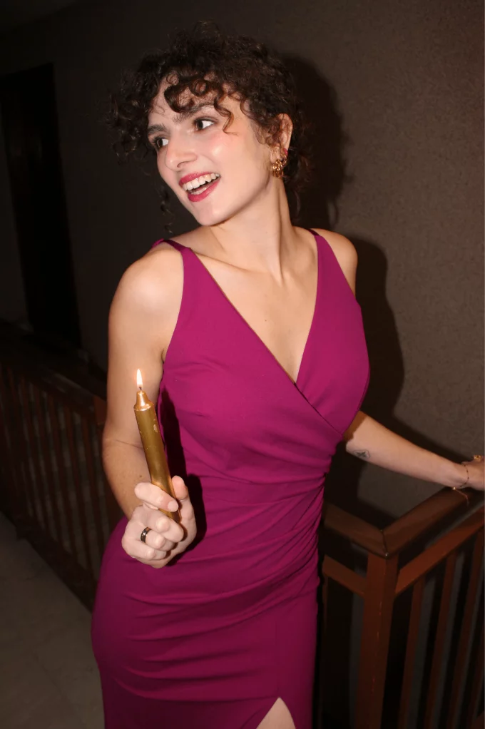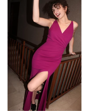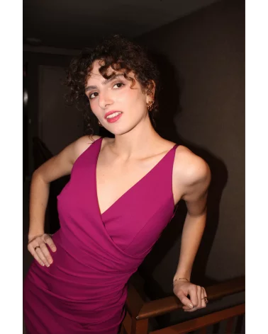 La robe Johanne rose est parfaite pour les fêtes. Sa matière fluide et élastique épousera votre silhouette, louez-la !