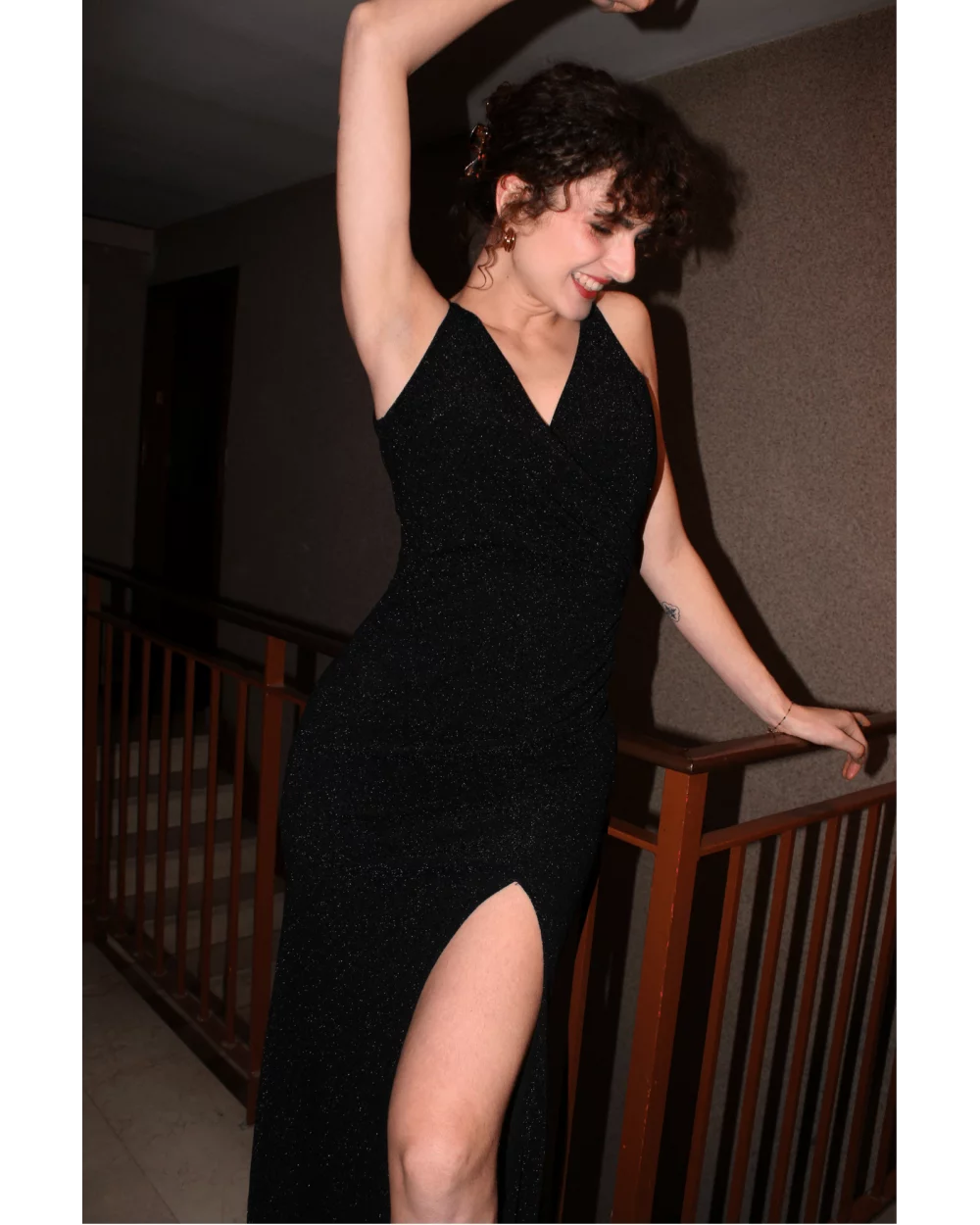 La robe Johanne noire à paillettes est parfaite pour les fêtes. Sa matière fluide et élastique épousera votre silhouette, louez-la !