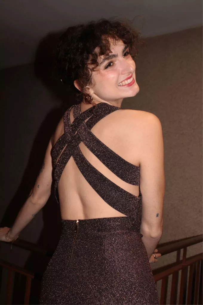 Manon mesure 1m76 et fait du 36-38. La robe taille plutôt petit.