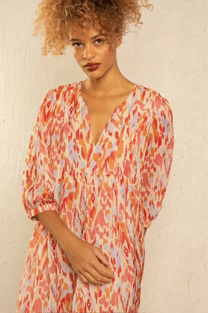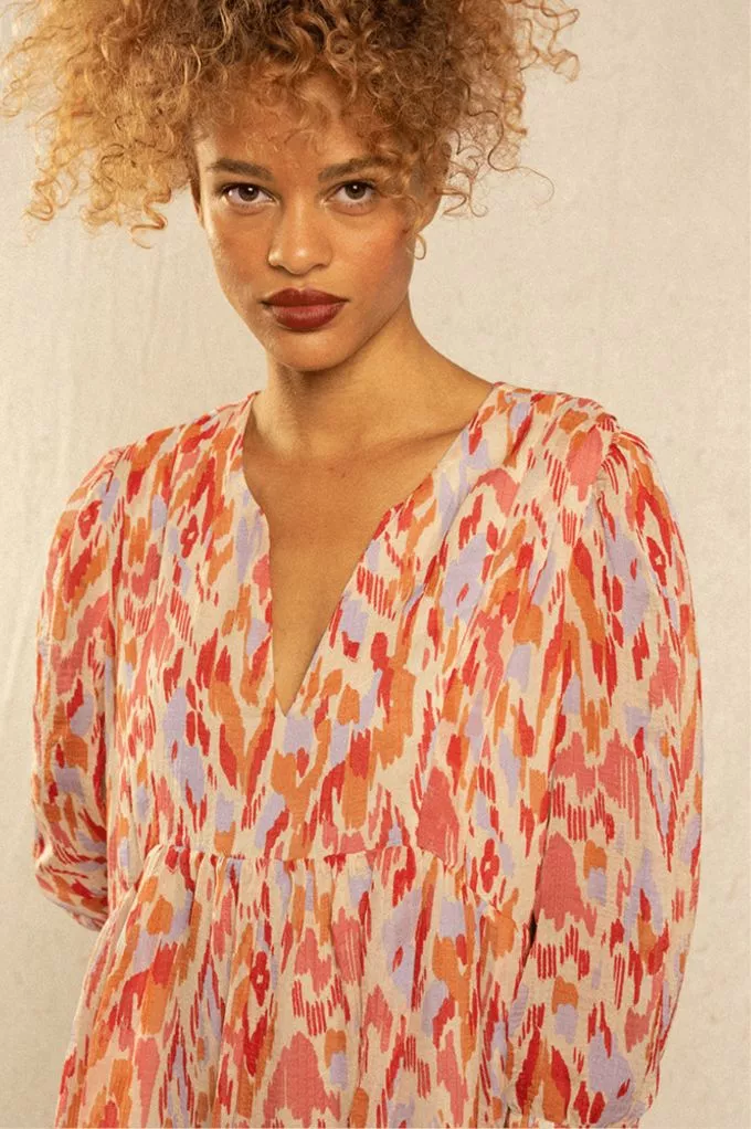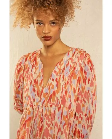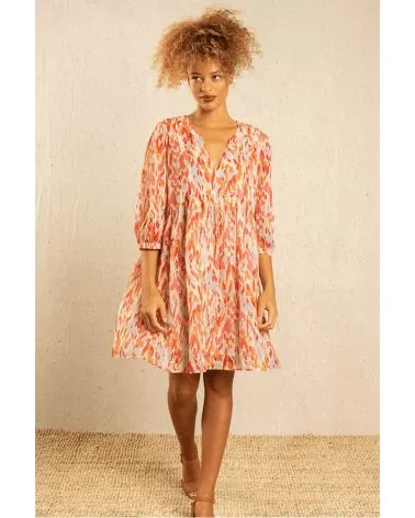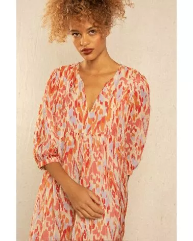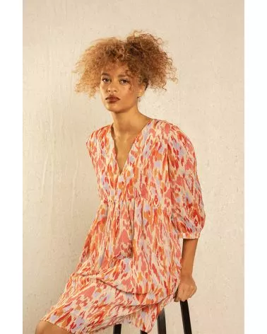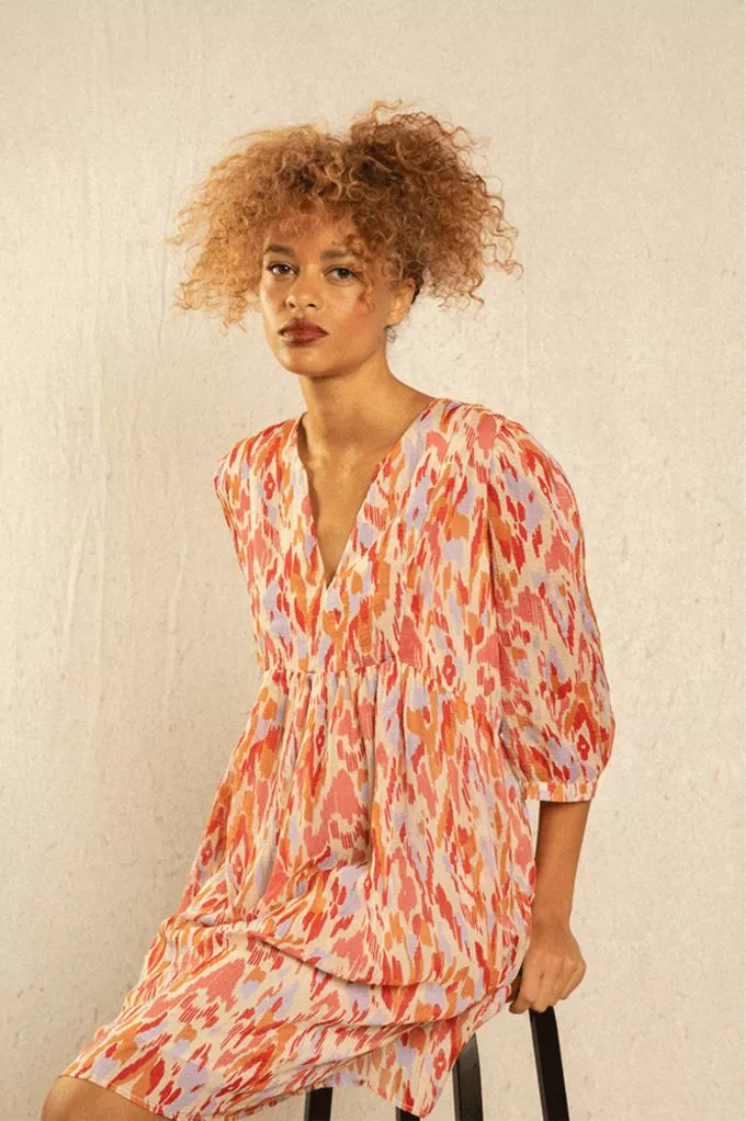 La mannequin mesure 1m72 et porte une taille S. La robe taille normalement.
