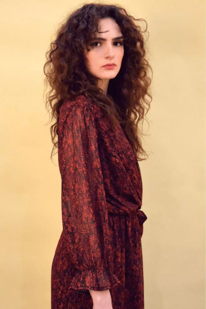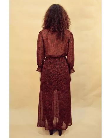 La robe Aude est une robe longueur midi en voile très légère et agréable à porter.