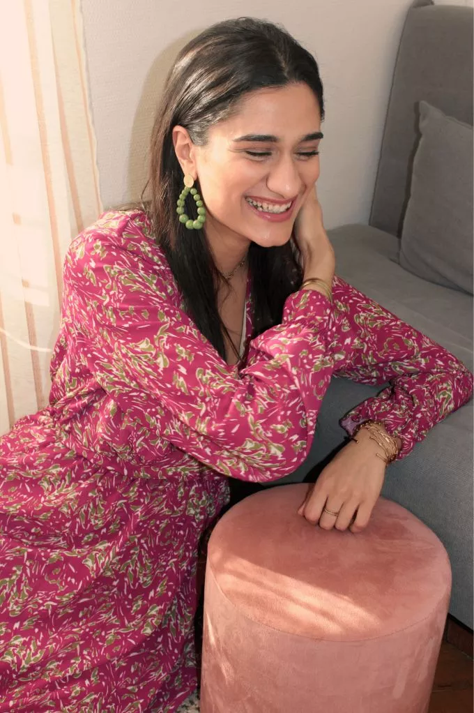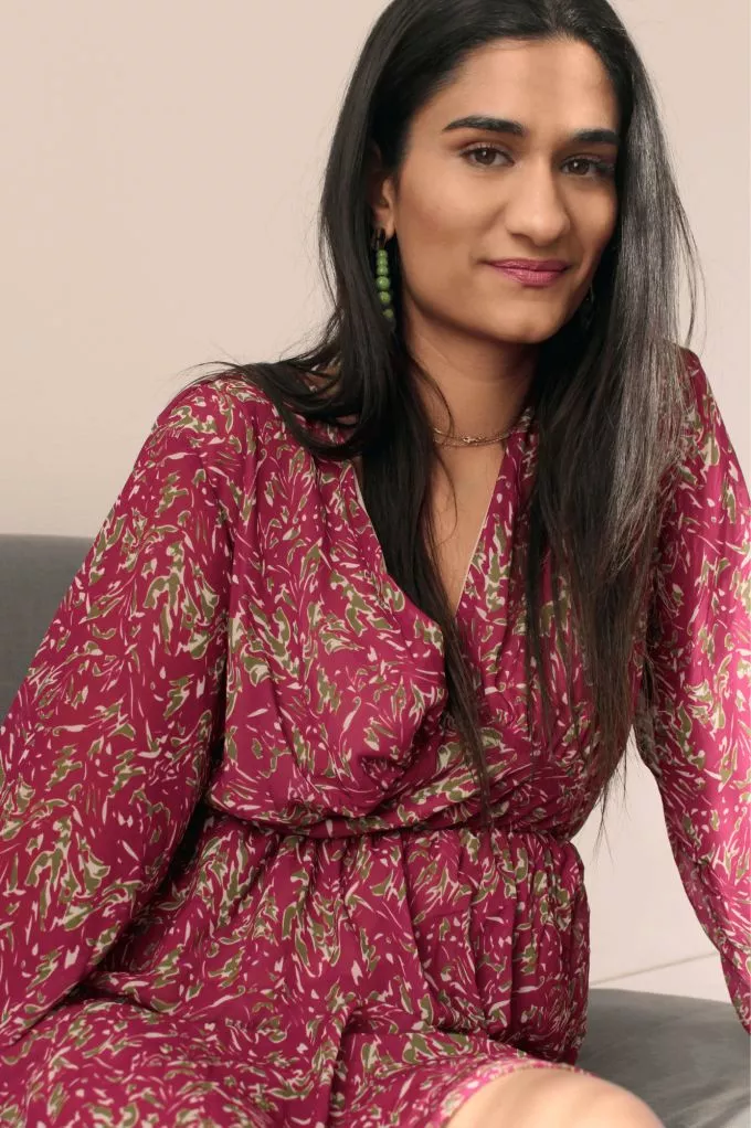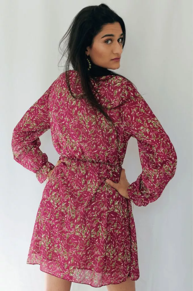 Le robe Iden verte est une robe courte avec un volume aérien et vaporeux qui met en valeur toutes les morphologies.