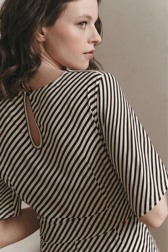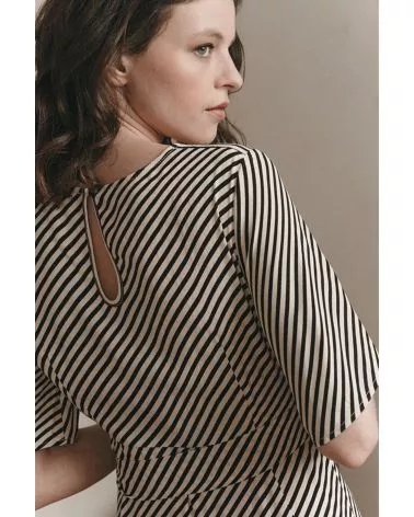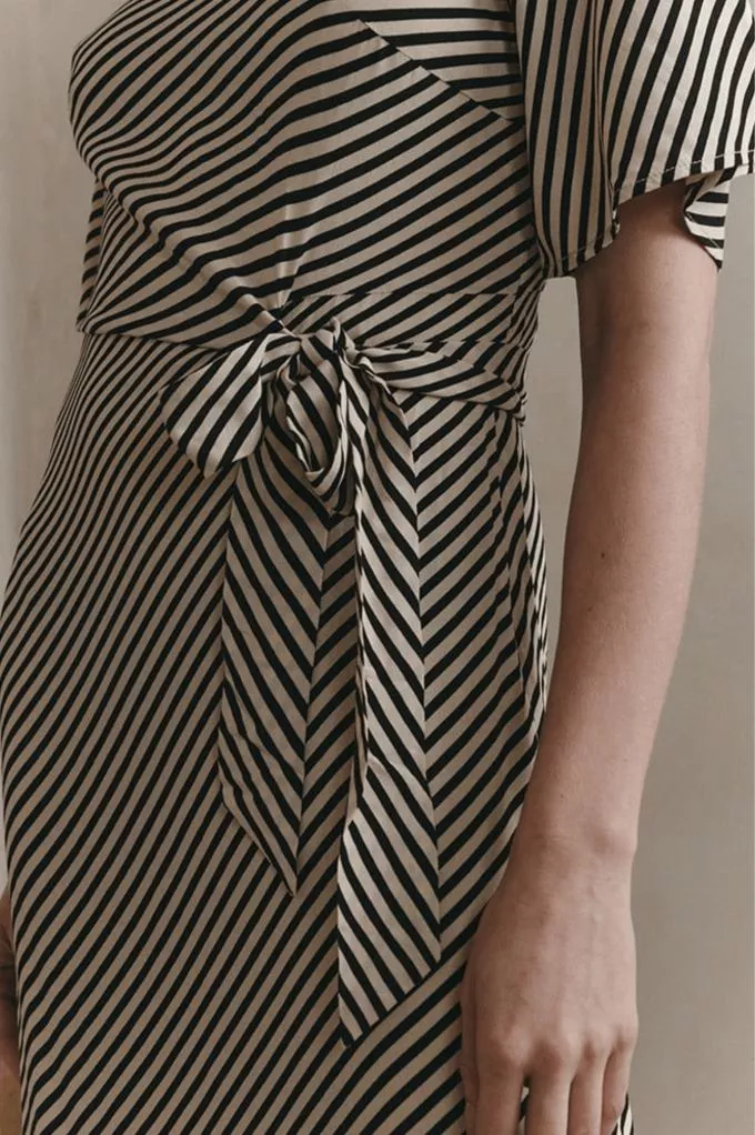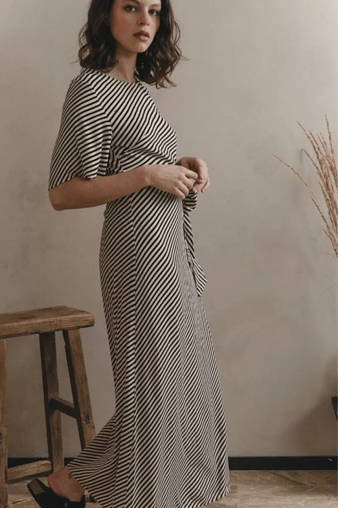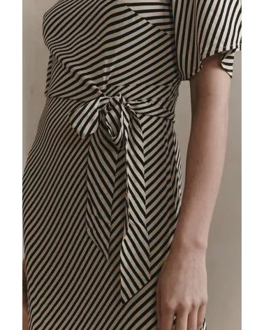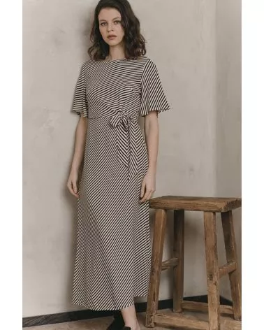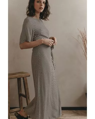 Jagger est une robe longue à manches courtes. Une coupe élégante avec une belle découpé nouée à la taille.