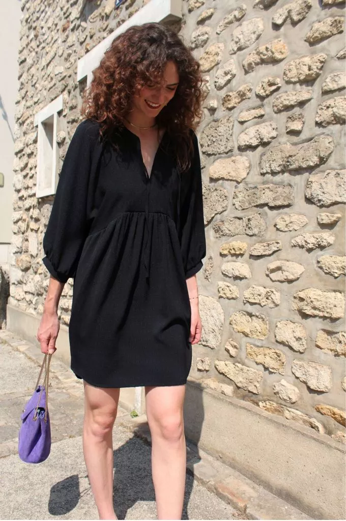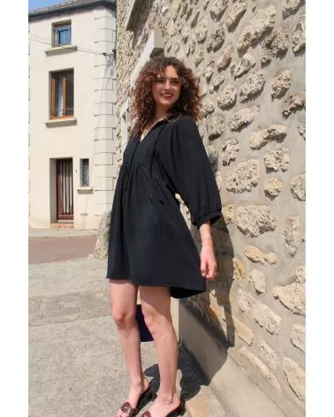 La robe Elyne noire est une robe courte avec un décolleté en V. On aime la coupe de cette robe qui offrent une allure casual, comme élégante, et naturelle tout en confort. La silhouette est minimaliste et chic on adore ! Louez-la cet été !