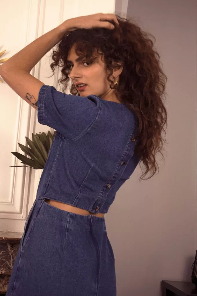 La robe Lennior saura certainement épouser votre silhouette. On aime son ouverture au dos, LE détail qui fait tout ! Le denim n'a jamais été autant en vogue, louez-la !