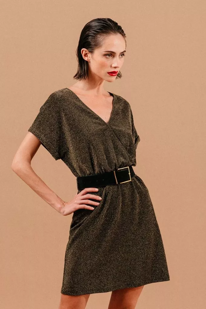La robe LOU est une ravissante robe courte scintillante à porter en journée comme en soirée. On adore sa coupe droite qui met en valeur toutes les silhouettes. Son encolure croisée et sa matière fluide font d'elle une robe ultra-féminine et confortable. Elle n'attend que vous, louez-la !