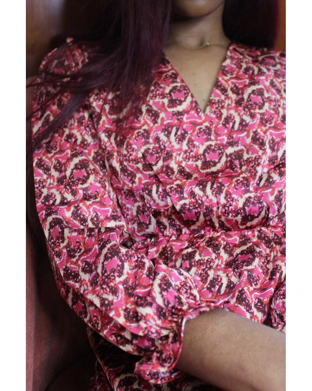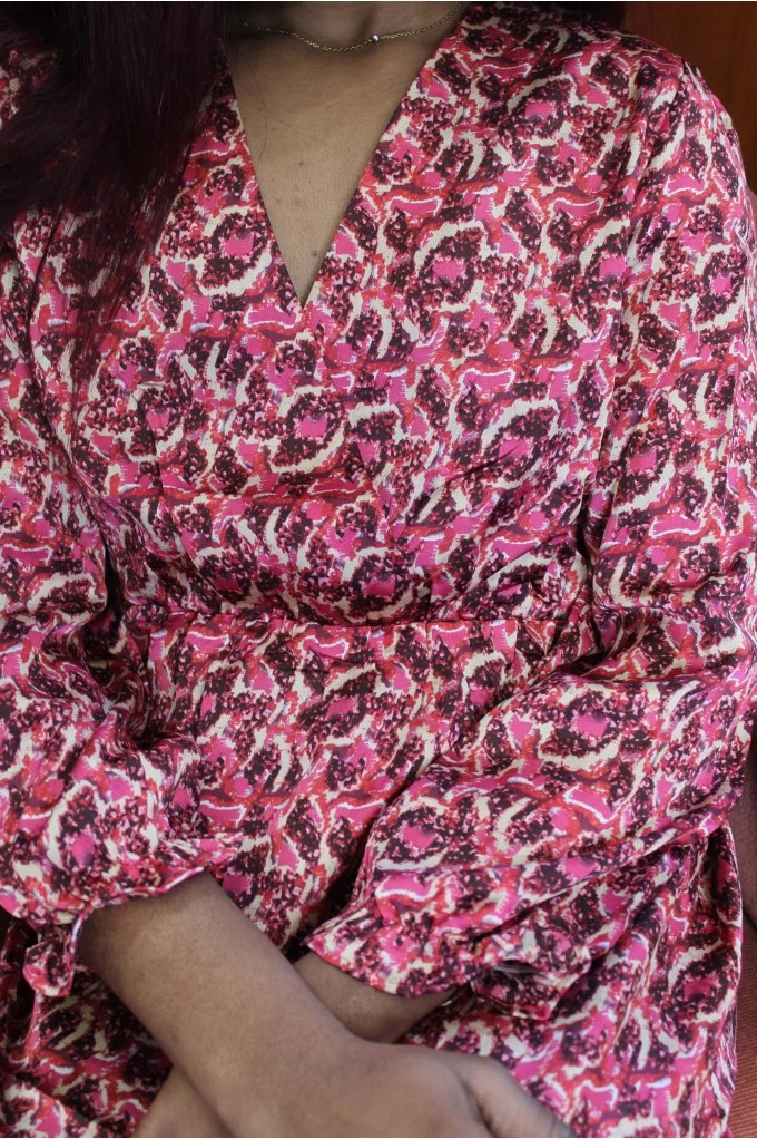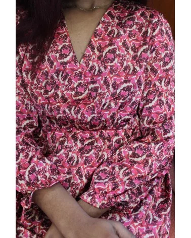 MELYNE est une robe longue fluide et facile à porter. Sa coupe cache-coeur et sa matière légèrement irisée lui donnent son allure féminine et élégante. C'est une pièce à louer !