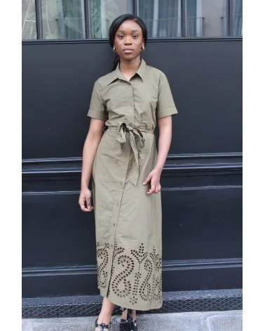 Anita est une robe chemise longue, parfaite pour les beaux jours. Vous pourrez la porter avec des baskets de ville pour un look décontracté ou des sandales à talons un look chic et habillé. Louez la !
