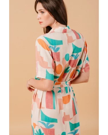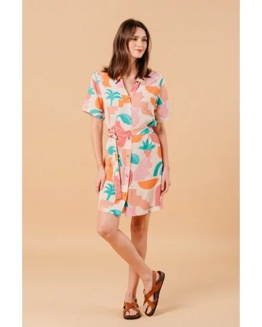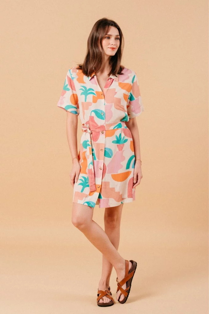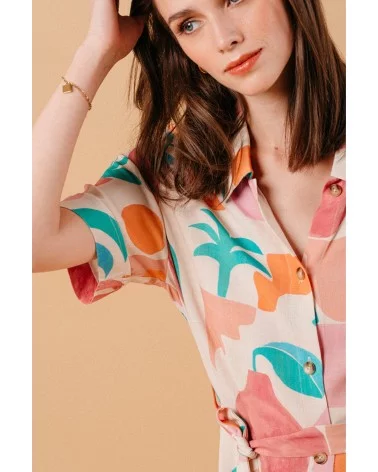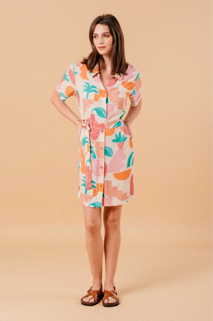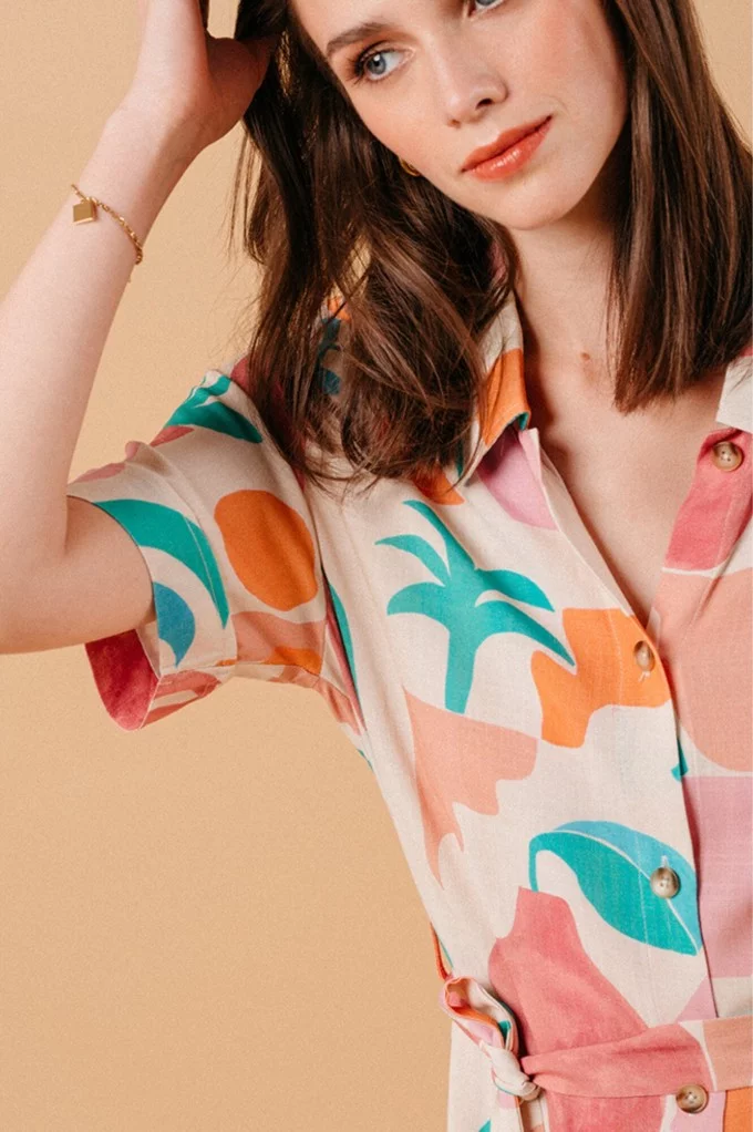 La robe Mirela est une robe chemise courte à imprimé graphique. Légère et délicate, elle deviendra votre indispensable de votre dressing pour les beaux jours. N'attendez plus, louez-la !
