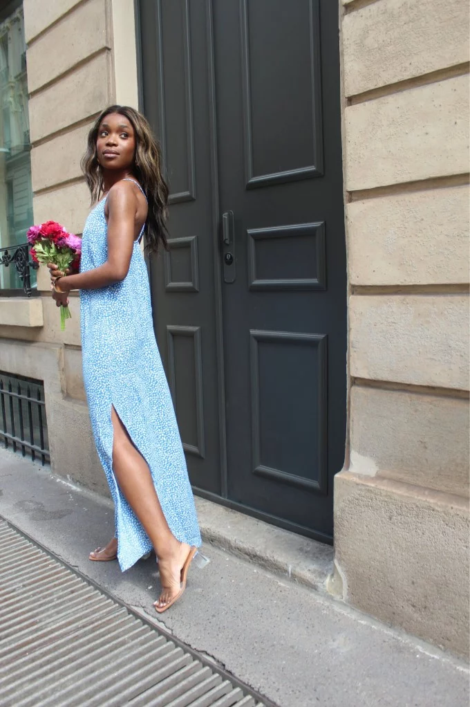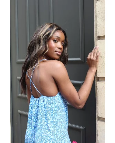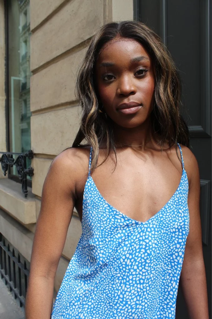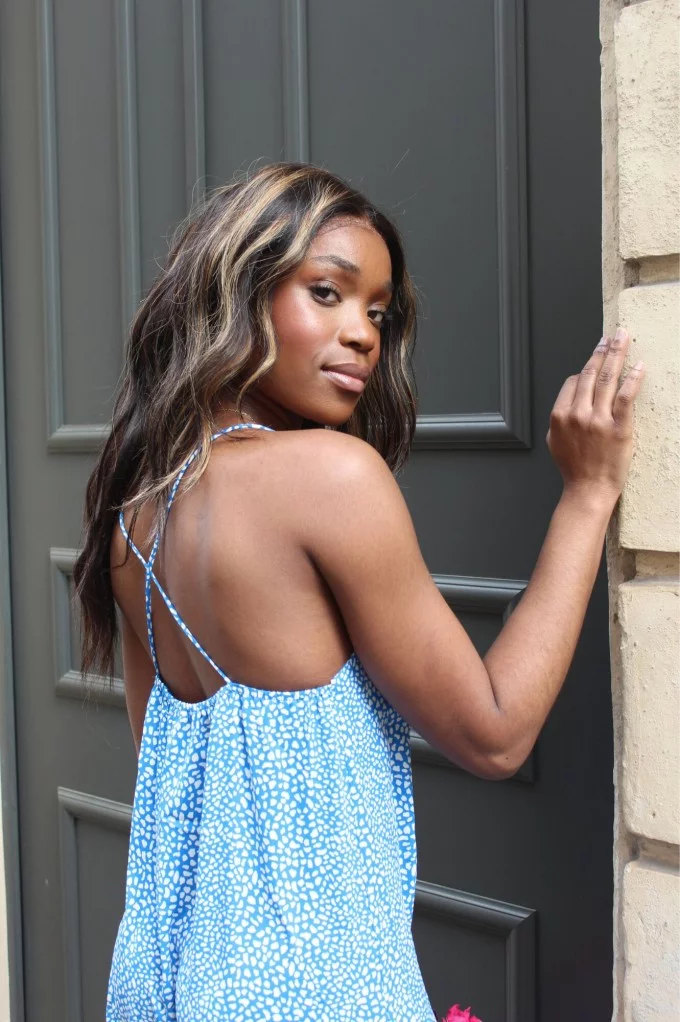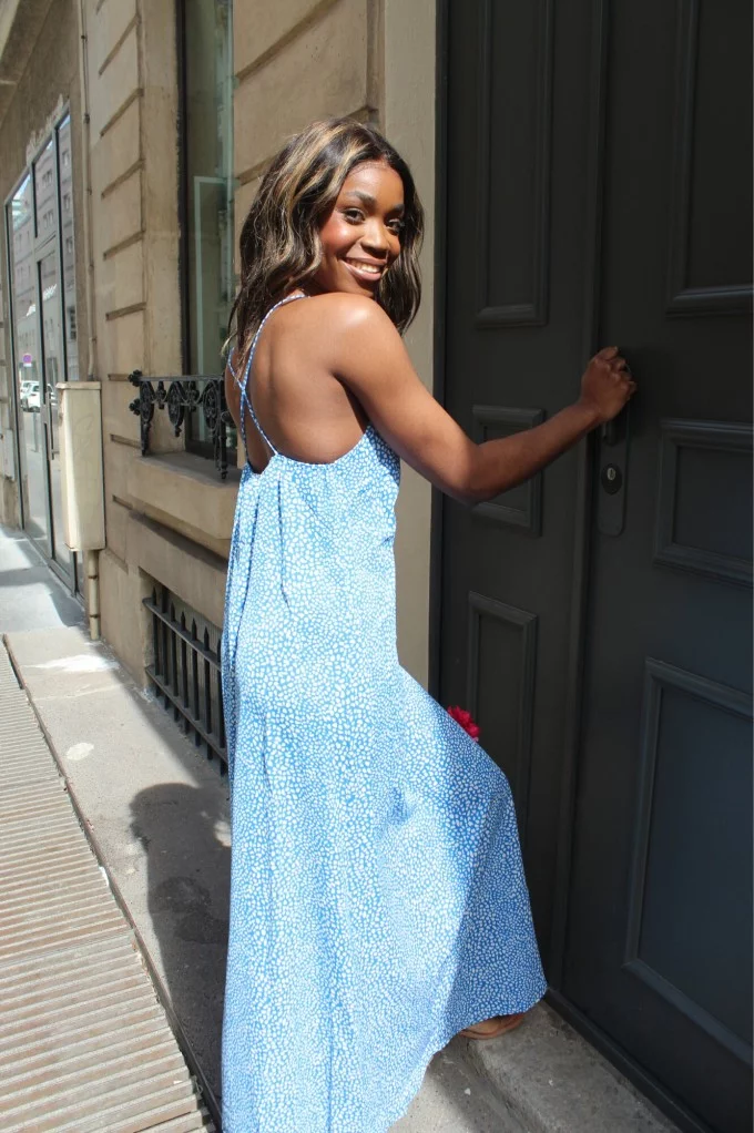 Simple, élégante et légère, la robe Musy glisse sur la peau comme une caresse d’été. Sa coupe longue et épurée flatte la silhouette, tandis que son imprimé bleu texturé apporte une touche graphique discrète mais affirmée. Facile à porter, elle s’adapte à toutes les occasions : un brunch en ville, une soirée les pieds dans le sable, ou même un rendez-vous romantique.