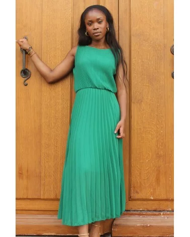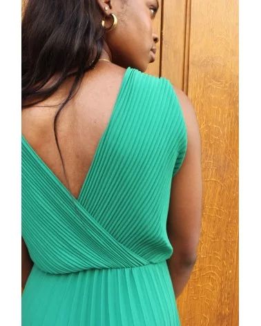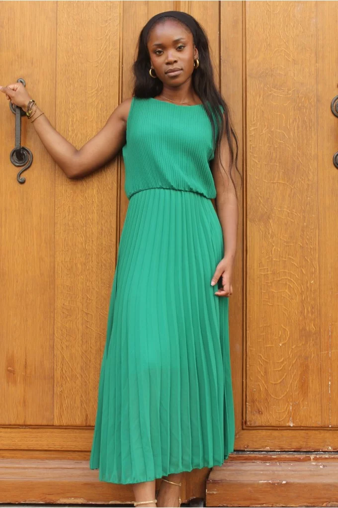Sombre et raffinée, la robe longue Corail en vert foncé séduit par sa simplicité élégante. Sa jupe plissée donne du mouvement à chaque pas, tandis que son dos plongeant apporte une touche sensuelle et moderne. Sa coupe fluide flatte toutes les silhouettes, parfaite pour les mariages, les cérémonies ou les soirées d’été.