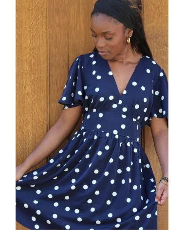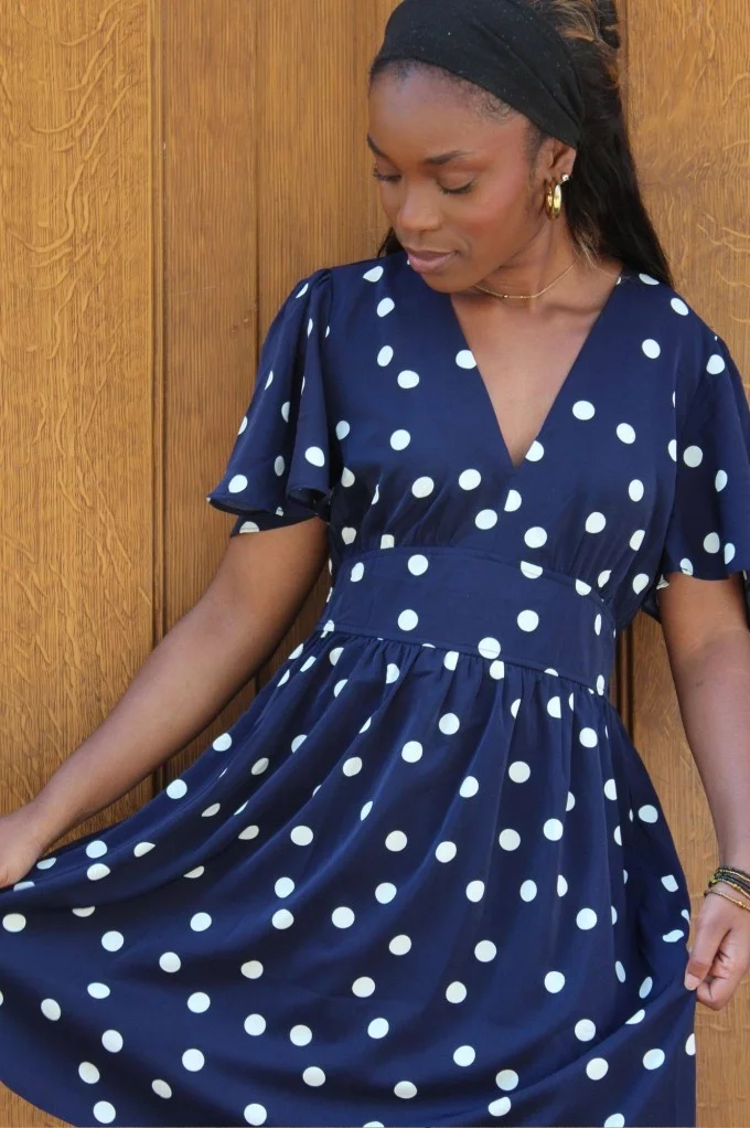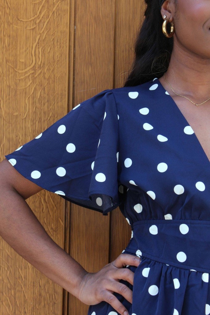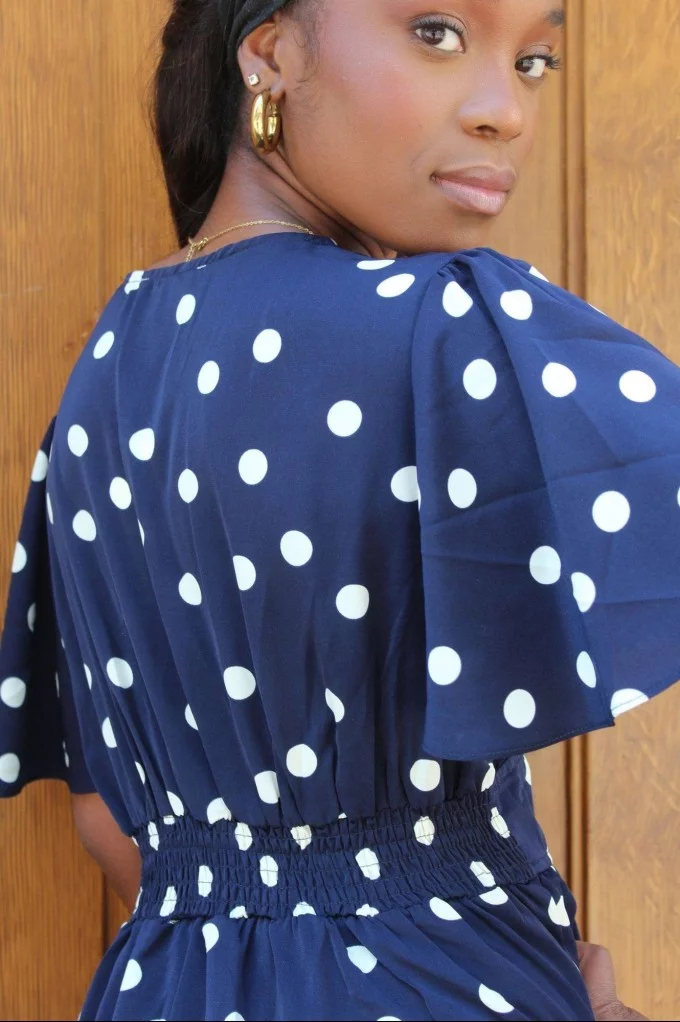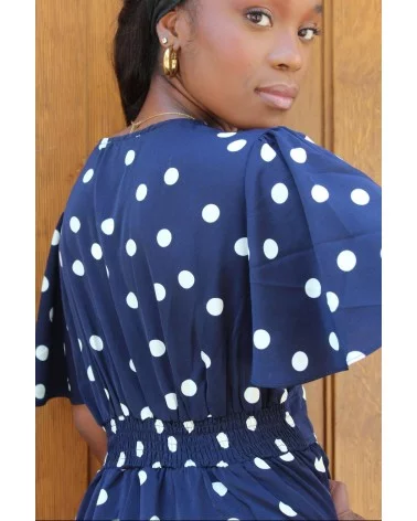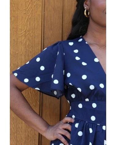 Découvrez la robe Soulia, une robe courte et fluide qui allie charme et fraîcheur estivale. Son bleu profond parsemé de pois blancs apporte une touche rétro et élégante, tandis que ses volants délicats soulignent la féminité de cette pièce légère. Conçue pour offrir confort et style, la robe Soulia est parfaite pour vos sorties en journée comme en soirée.