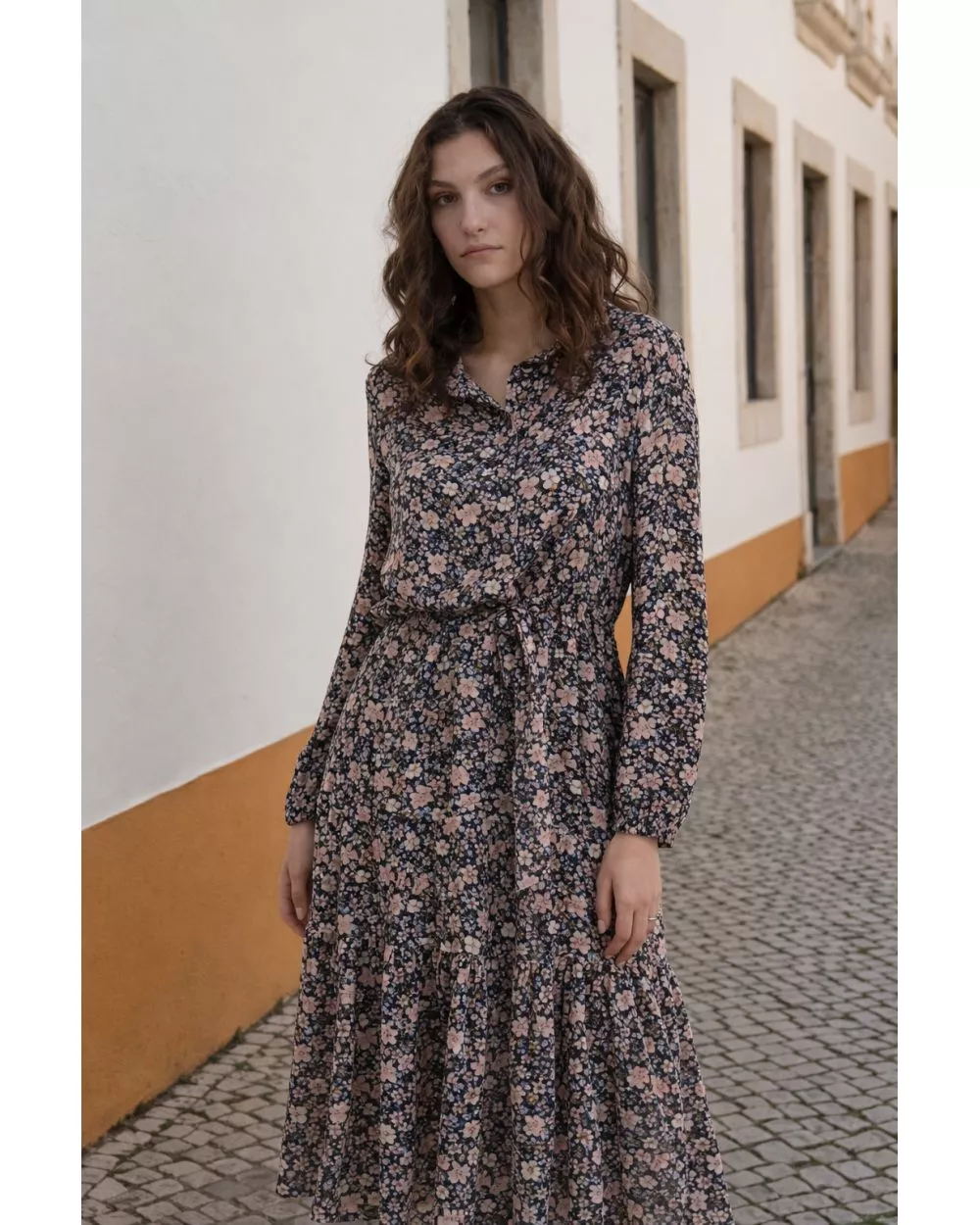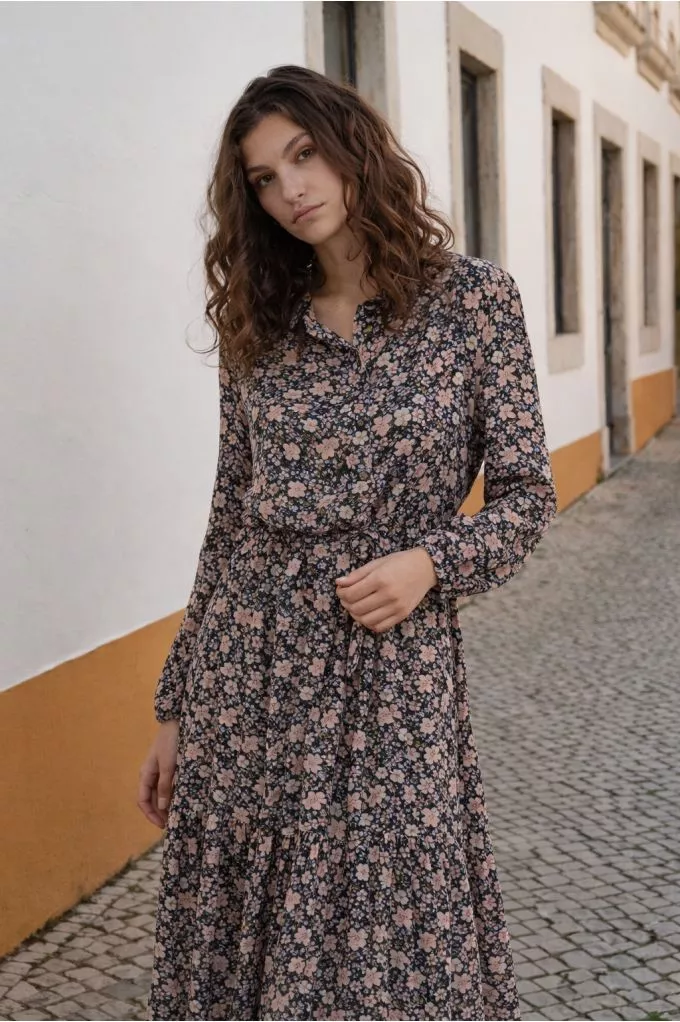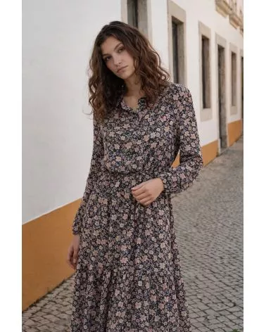 Cette robe longue à motifs est parfaite pour une grande occasion comme un mariage ou une soirée avec des talons ou pour un look bohème avec une paire de baskets. Sa taille cintrée et ses volants la rendent très féminine et singulière.