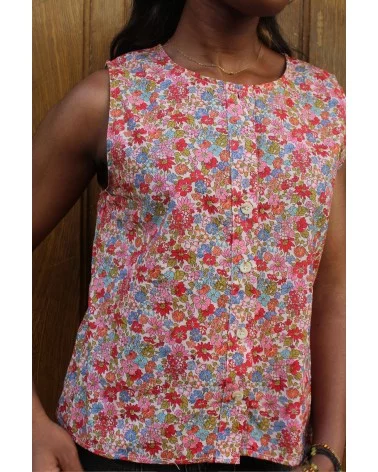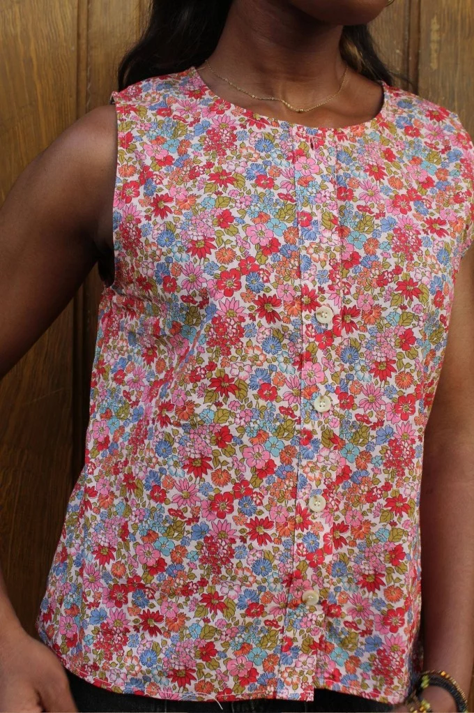 Avec son imprimé fleuri généreux et sa coupe légère, il respire l’été et la fraîcheur. Ni totalement débardeur, ni entièrement manches courtes, il dévoile subtilement les épaules avec une coupe délicate, parfaite pour les journées ensoleillées. Sa matière fluide et agréable le rend ultra confortable à porter, tout en gardant un style soigné et raffiné.