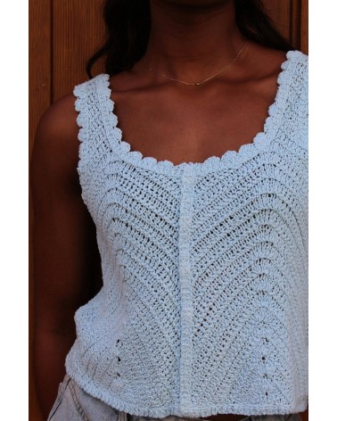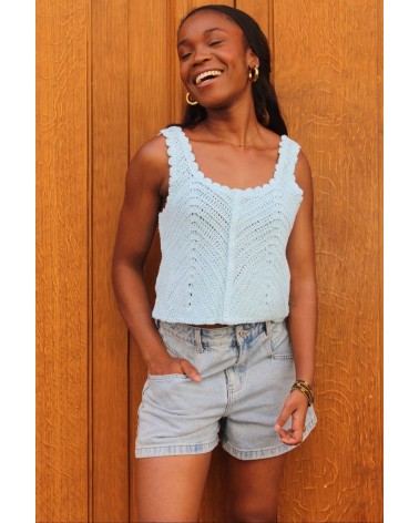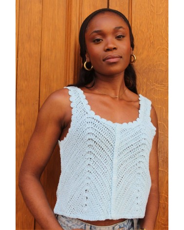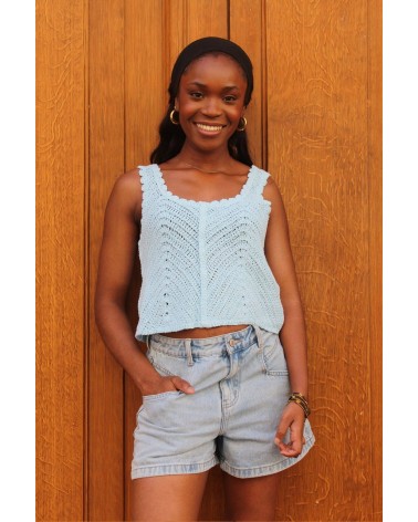 Dans un bleu profond, ce top tressé séduit par son allure originale et ses fines bretelles qui mettent la silhouette en valeur. Sa coupe courte en fait une pièce idéale pour les journées chaudes d’été ou pour compléter une tenue tendance et décontractée.
