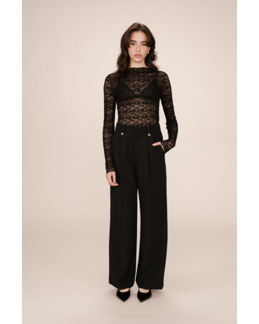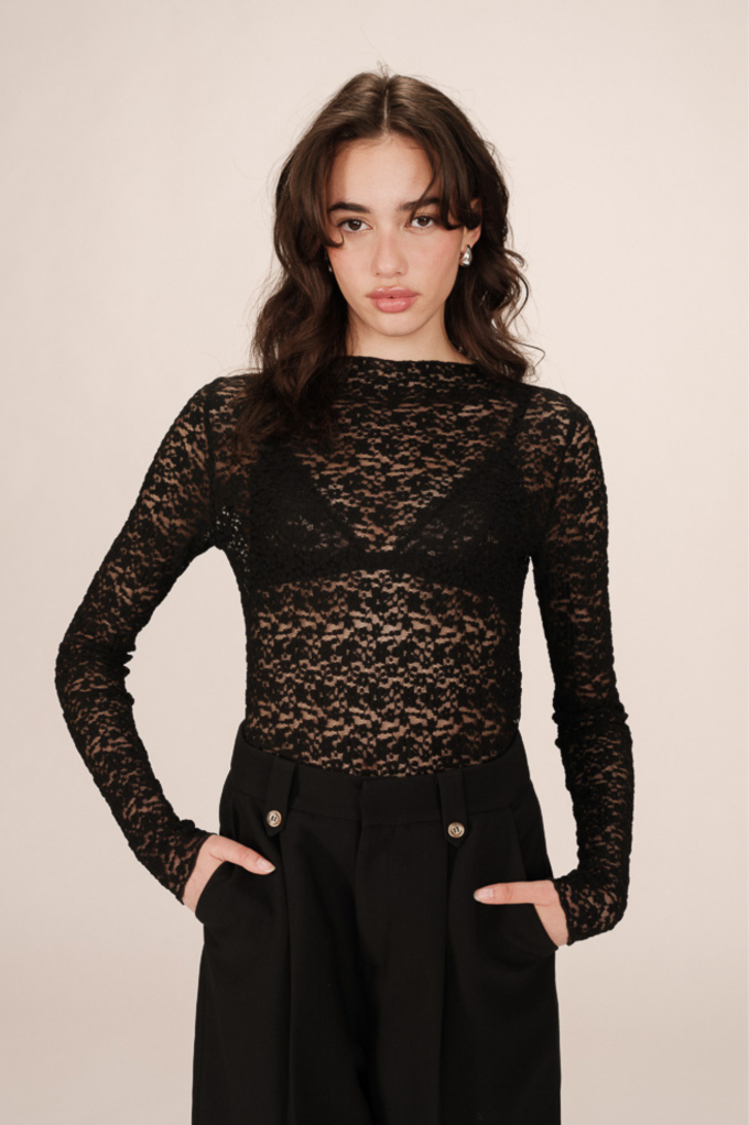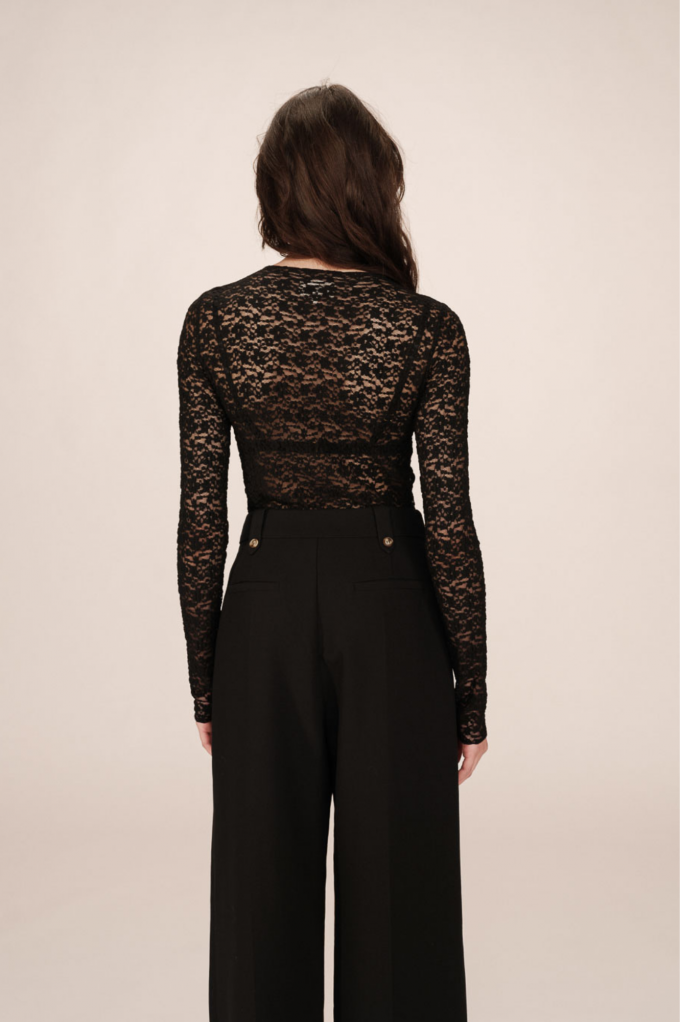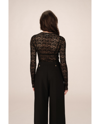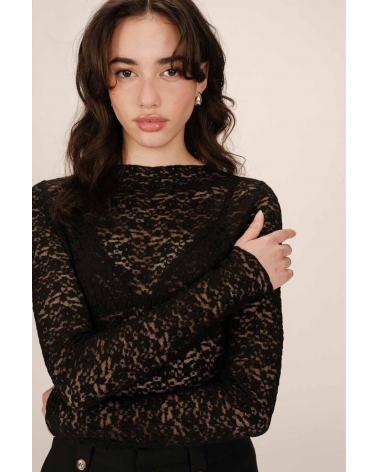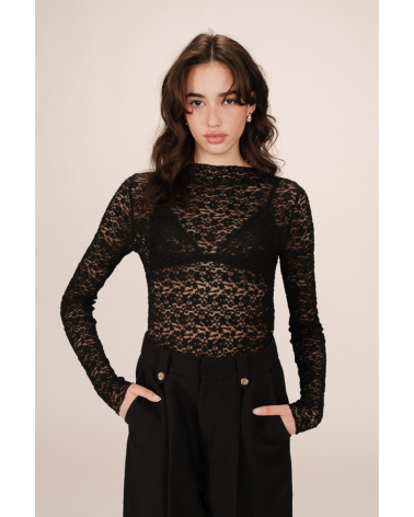 Un classique twisté tout en féminité ! Le top Shady séduit par son tissu en dentelle noire et son encolure ronde subtilement travaillée, pour un look chic sans effort.