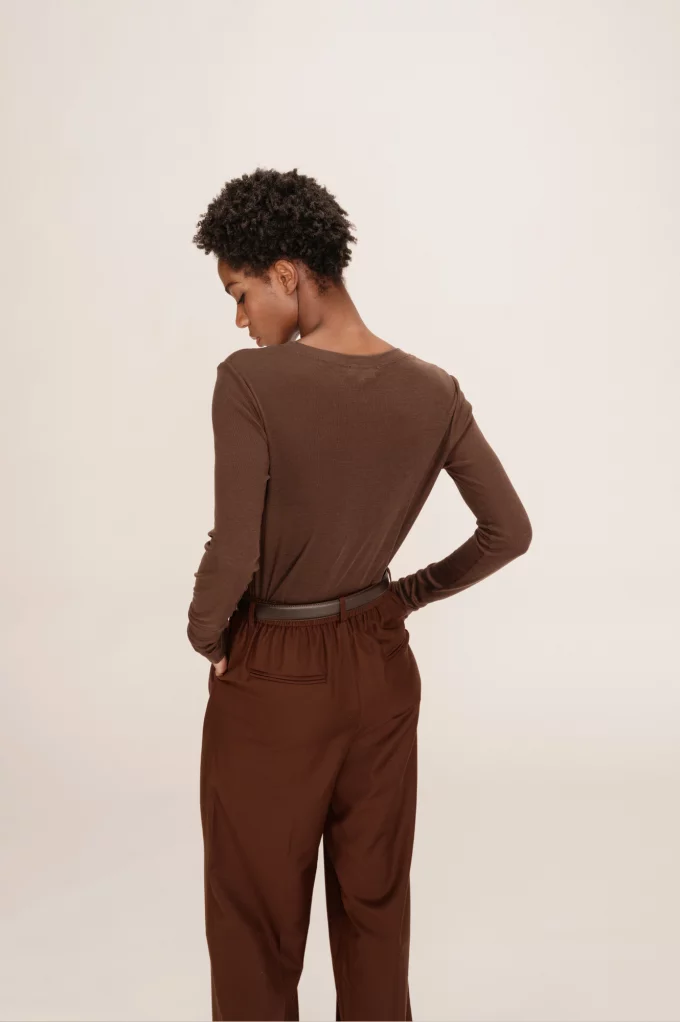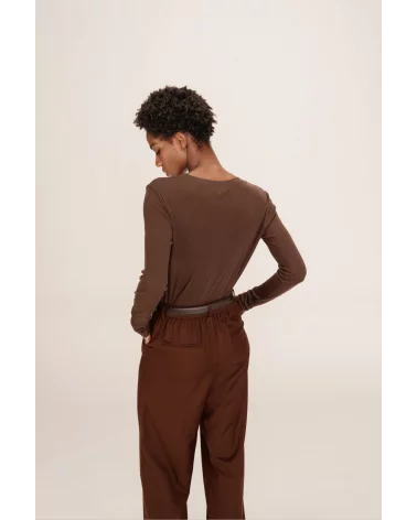 Adoptez un look élégant et confortable avec le T-shirt Toni chocolat à manches longues de Grace & Mila. Confectionné dans une matière douce et agréable à porter, ce T-shirt séduit par sa coupe moderne et ajustée, idéale pour un style chic et confortable au quotidien. Sa teinte chocolat apporte chaleur et sophistication à vos tenues, tandis que ses manches longues assurent confort et praticité. Polyvalent, il se porte facilement avec un jean, un pantalon ou une jupe pour un look tendance et raffiné. Allez hop, dans la box.