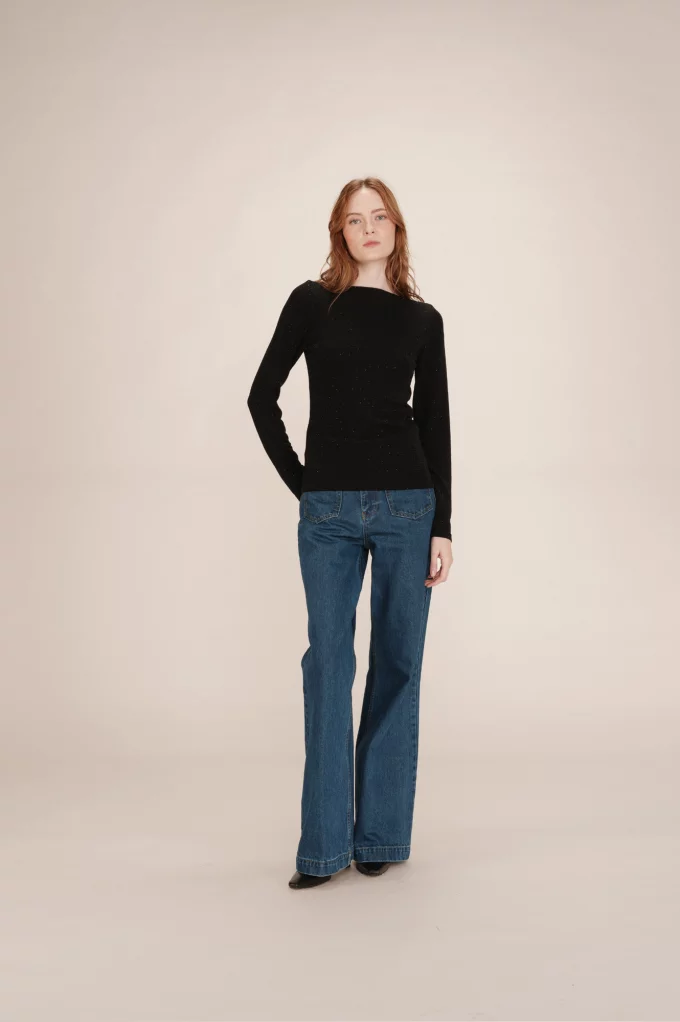 Sublimez vos looks avec le top Timothée noir de Grace & Mila. Confectionné dans une matière douce et agréable à porter, ce top séduit par sa coupe moderne et féminine, idéale pour un style chic et confortable au quotidien. Sa couleur noire intemporelle apporte élégance et polyvalence, tandis que sa coupe ajustée assure un maintien parfait. Polyvalent, il se porte facilement avec un pantalon, une jupe ou un jean pour un look raffiné et tendance.