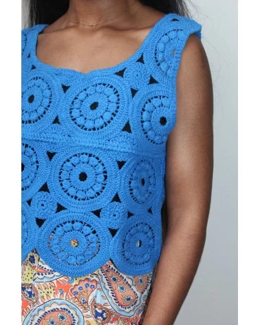 Un super top pour vos journées ensoleillées ! Un top coloré et féminin pour les beaux jours ? Le top Ora est celui qu'il vous faut ! On adore son bleu électrique assimilé avec ses graphiques imposant qui apportera authenticité à vos looks. A porter avec des baskets pour une sortie en journée ou une paire de talons pour vos chics soirées d'été. Louez le !