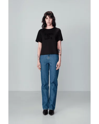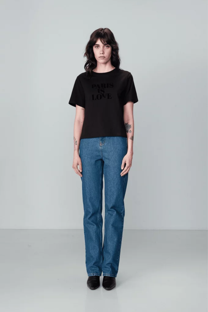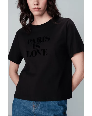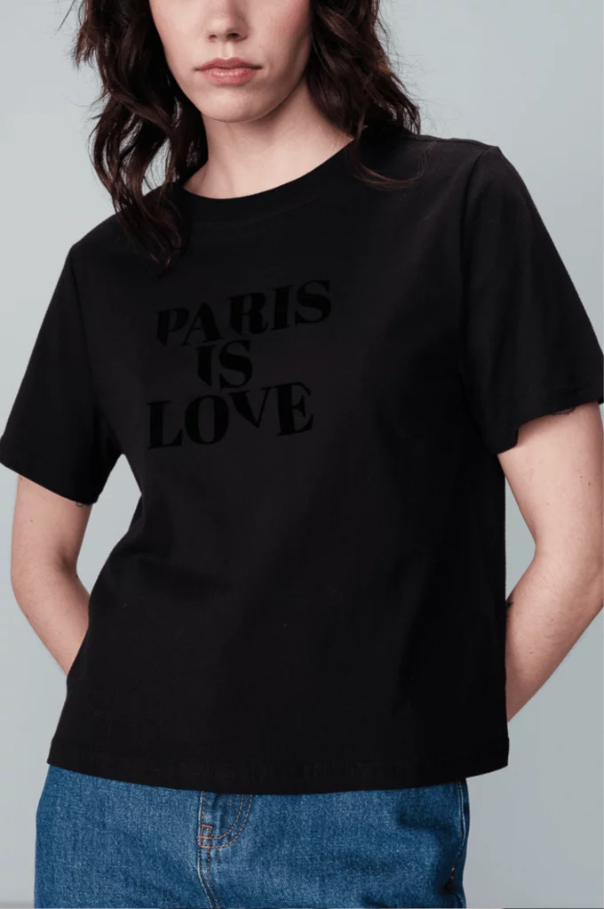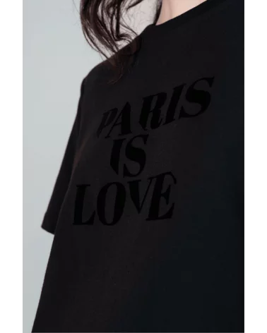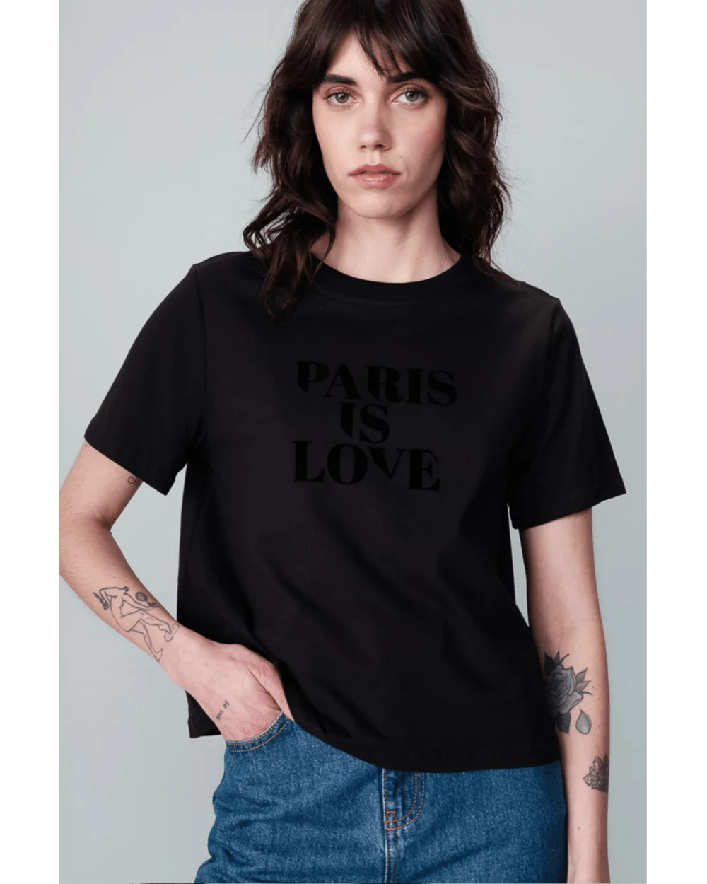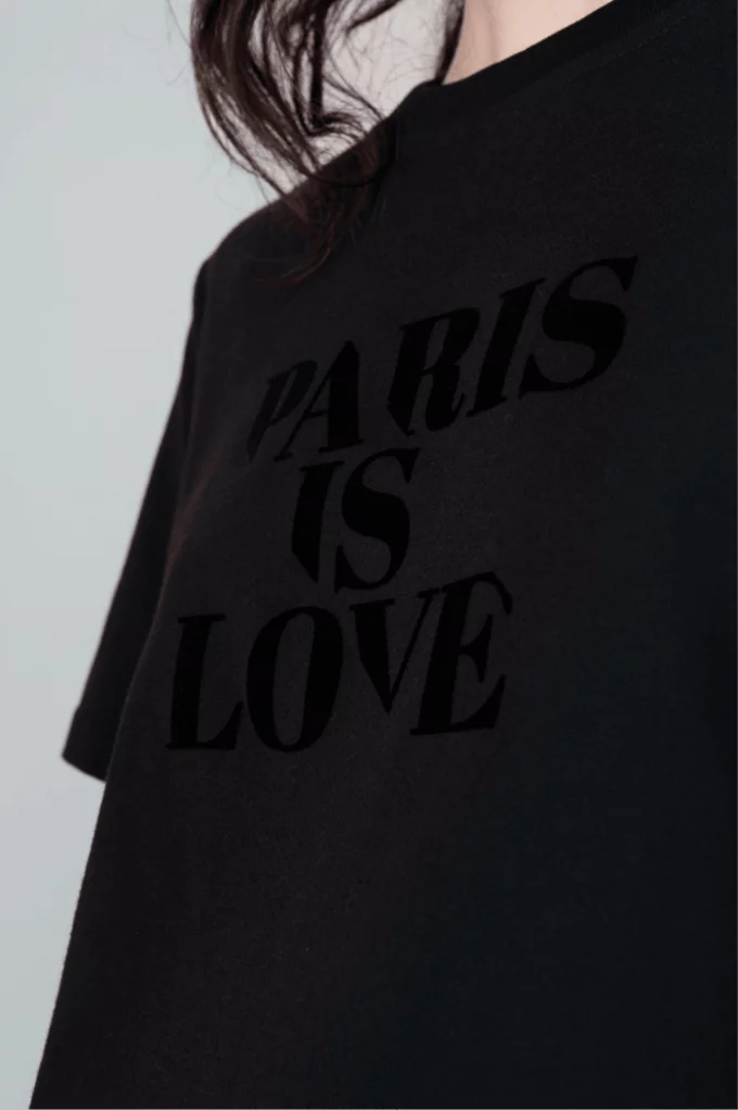 Nobuto est un t-shirt en coton agrémenté du mot "PARIS IS LOVE" imprimé en velours noir. Avec l'encolure ronde et les manches courtes, il sera un basique de votre garde-robe. N'attendez plus, louez-le !