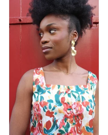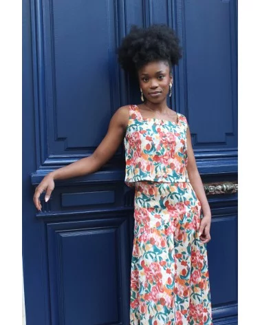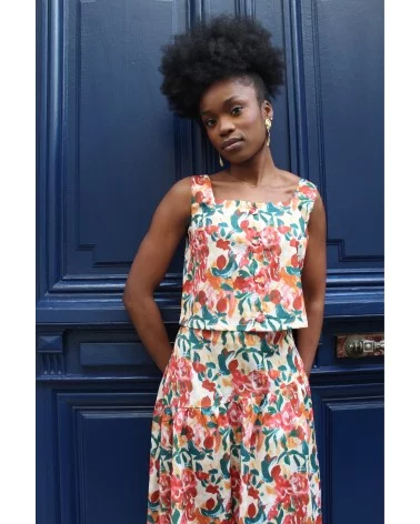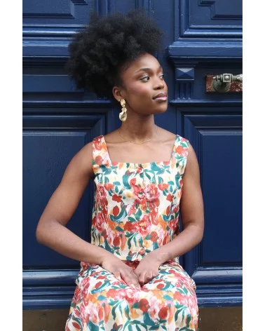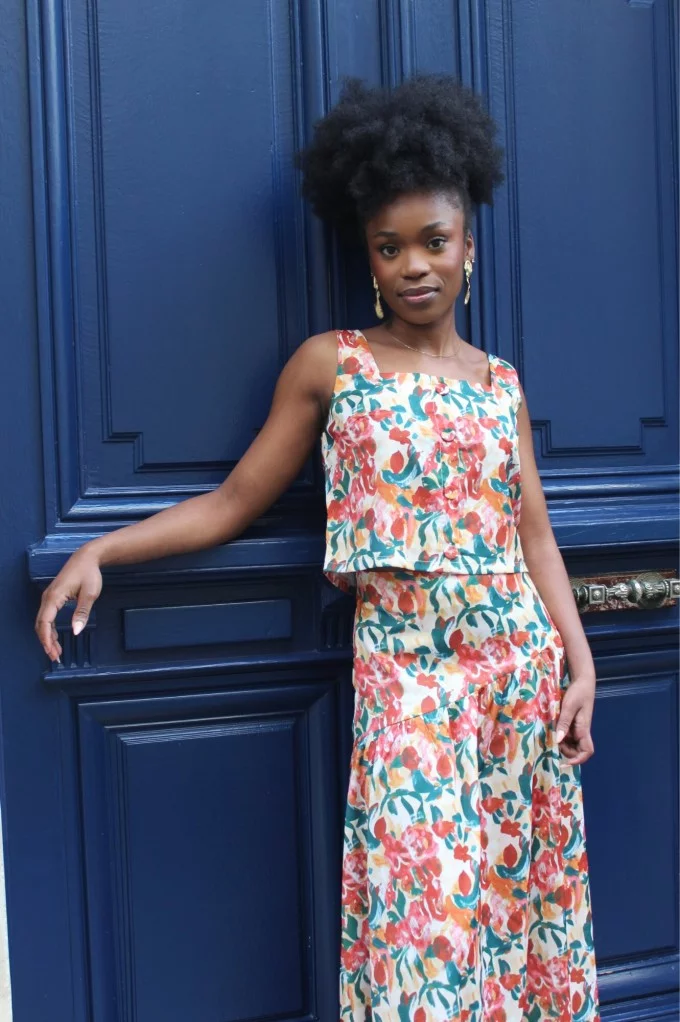 Le top Arty, avec son imprimé coloré inspiré de l’art abstrait, est la touche lumineuse qui dynamise instantanément votre tenue. Sa coupe carrée à larges bretelles et son boutonnage délicat à l’avant apportent une allure à la fois chic et décontractée. À porter avec la jupe assortie pour un effet total look irrésistible ou à mixer avec un jean taille haute pour une silhouette plus casual mais toujours stylée. Léger et fluide, il vous accompagne en toute saison avec élégance et confort. Associez la à un top assorti ou à une blouse unie pour un look aussi chic que naturel ! Allez hop, dans la Box !
