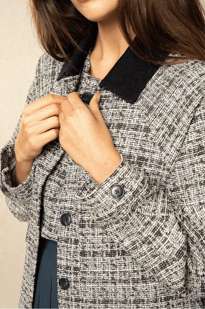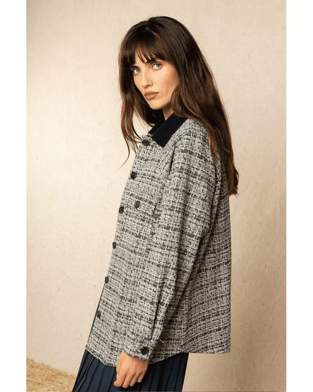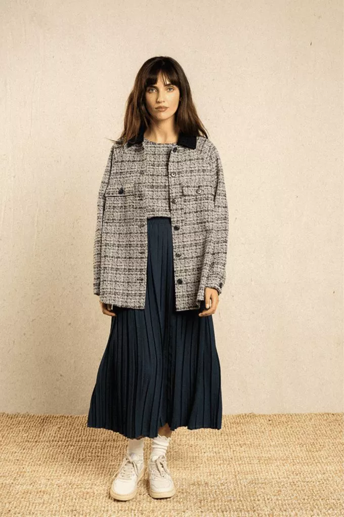 La veste Isadora marine se porte parfaitement en tant que surchemise que comme haut. Allez hop, dans la Box !