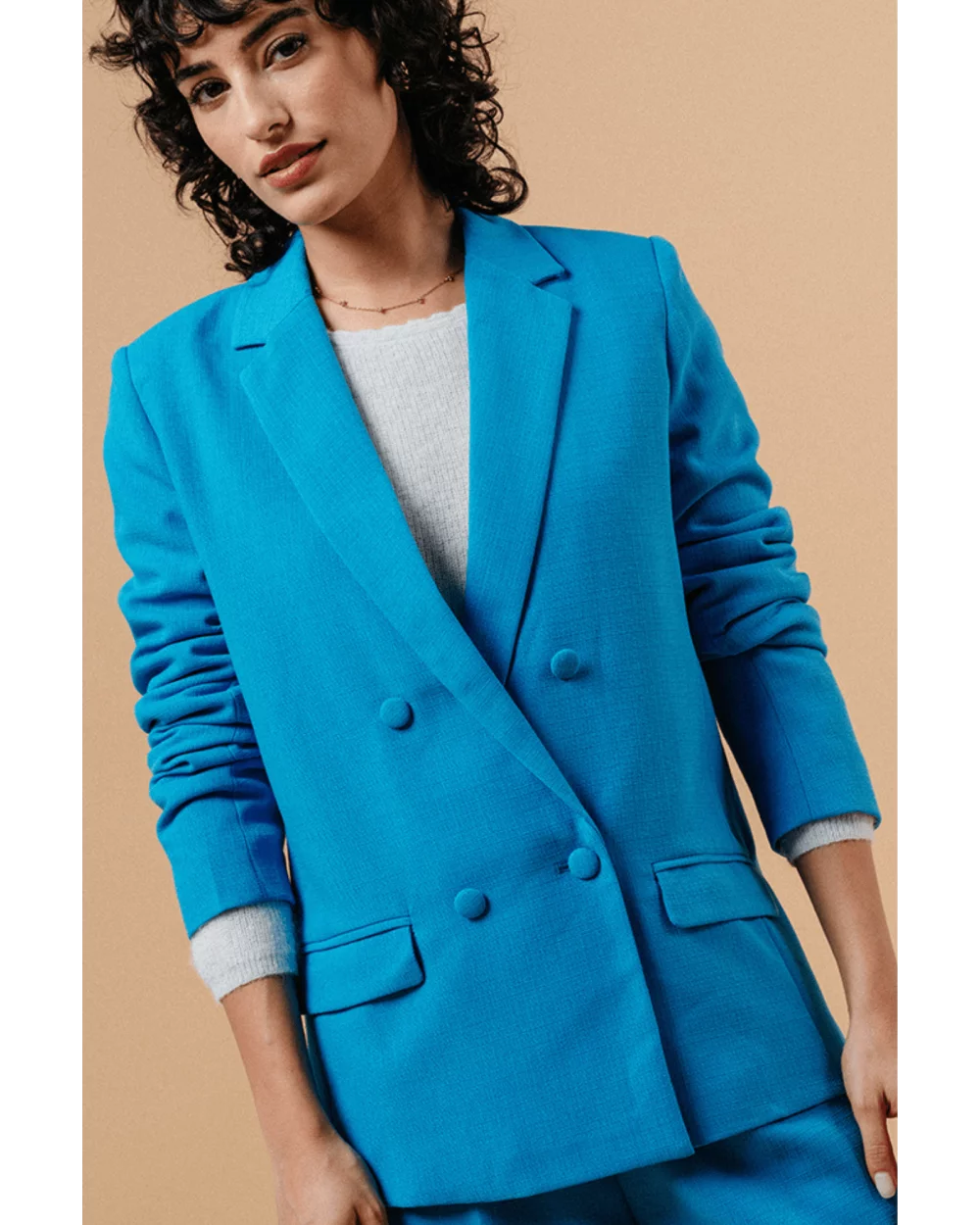 La veste blazer Mazarine allie parfaitement le confort, grâce à sa coupe oversize et l'élégance avec ses épaulettes et son col tailleur. Véritable coup de coeur pour cette pièce initialement empruntée au vestiaire masculin et réinterprétée pour convenir à la silhouette et aux courbes féminines. Louez-la, vous ne le regretterez pas !