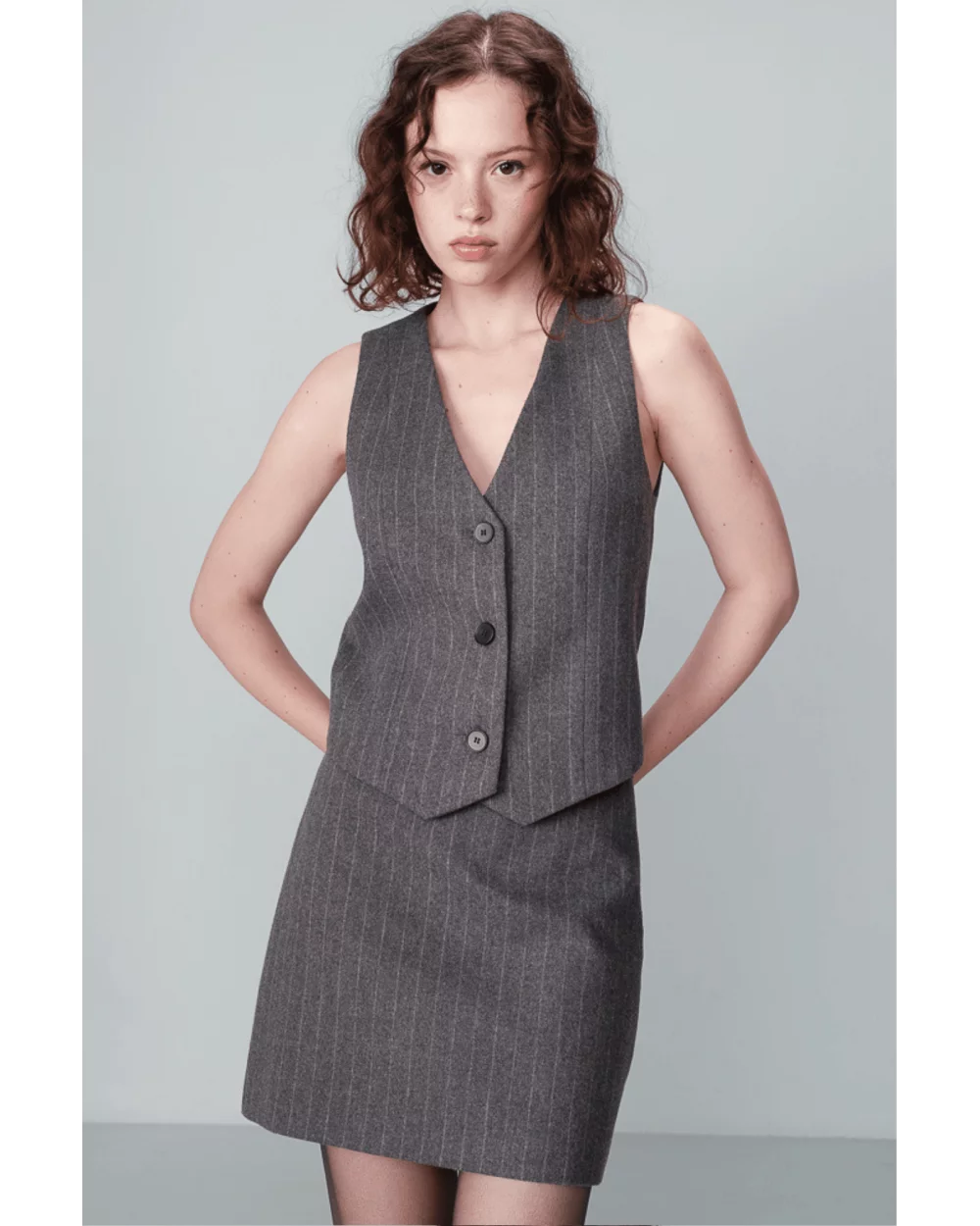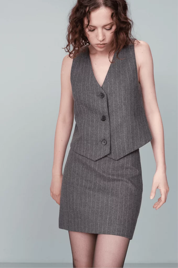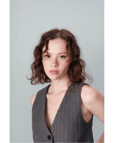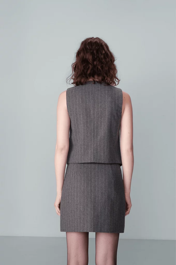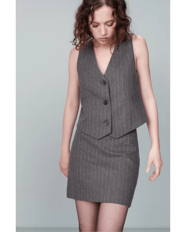Incontournable de la mode masculine pour une version plus féminine, le gilet Nico s'inscrit parfaitement dans le style officewear. Le gilet à rayures NICO a une encolure en V qui souligne le décolleté et une patte de boutonnage sur le devant.  À louer absolument !