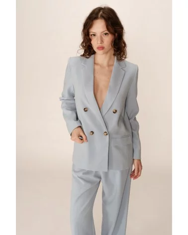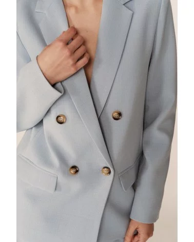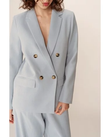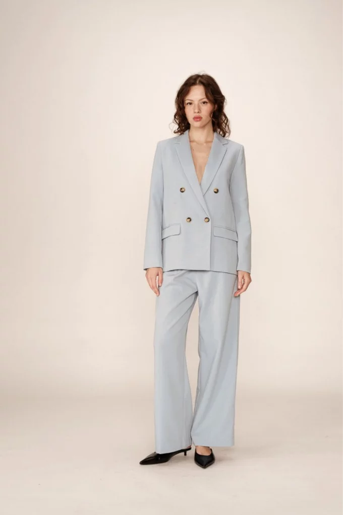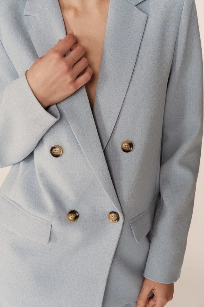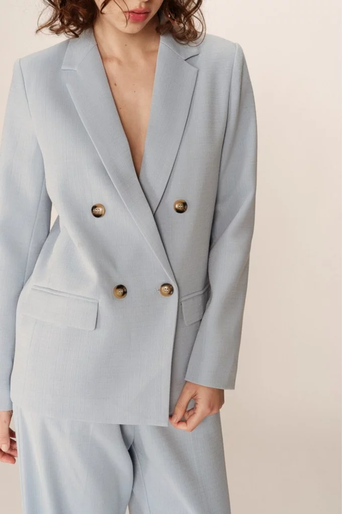 Avec sa coupe structurée, son double boutonnage doré et son bleu ciel raffiné, la veste Parfaite sublime chaque look.