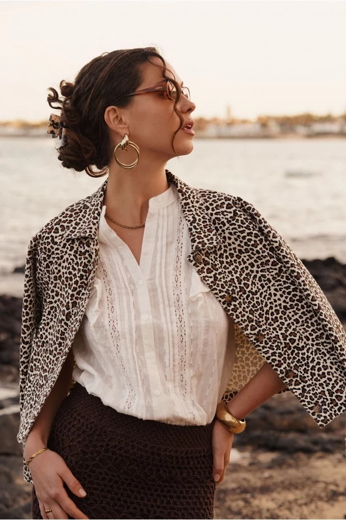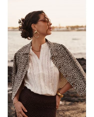 Adoptez un look audacieux et tendance avec la veste Léo, pièce maîtresse de votre garde-robe. Son imprimé léopard intemporel apporte une touche sauvage et élégante à toutes vos tenues. Confectionnée dans un tissu léger mais structuré, elle assure confort et style en toute occasion. Avec sa coupe légèrement oversize, ses boutons effet bois et son col classique, cette veste se marie parfaitement avec un jean décontracté ou une robe plus sophistiquée. Allez hop, dans la Box !