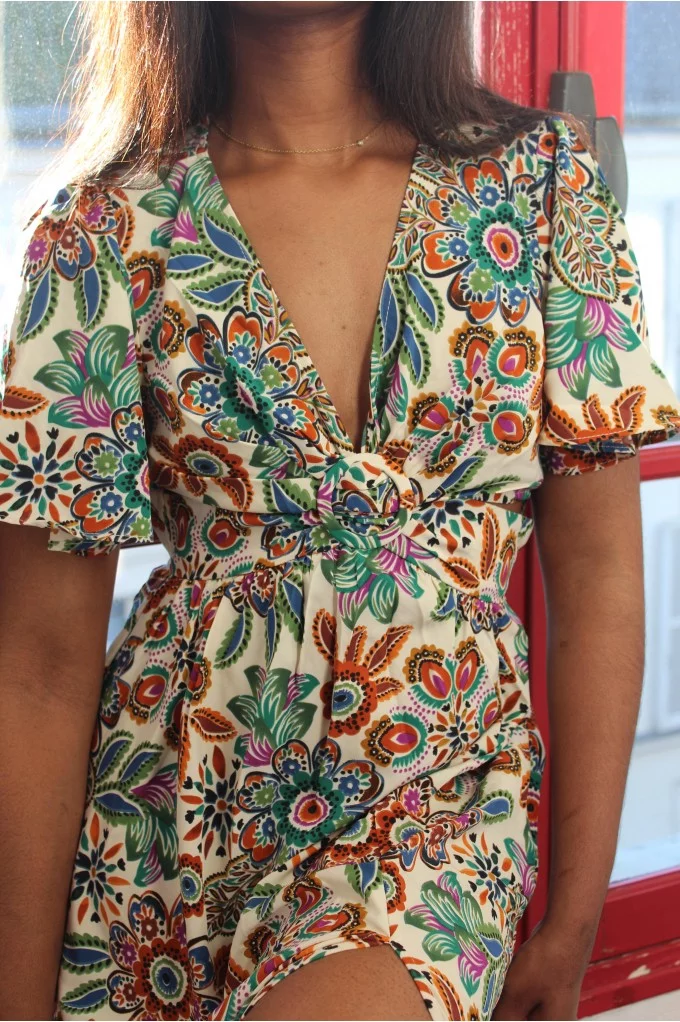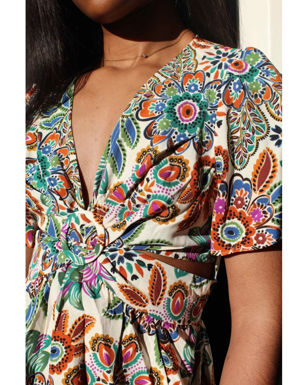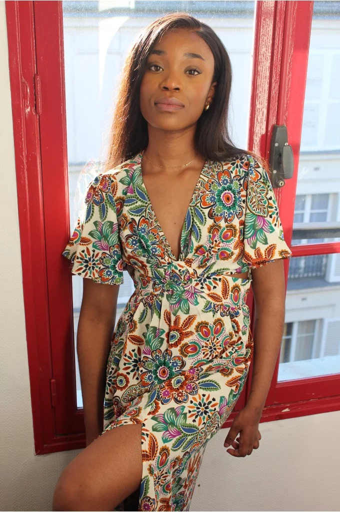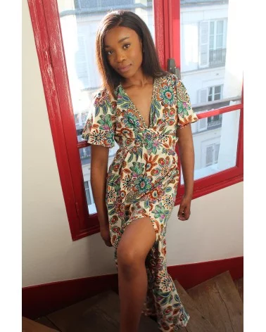La Robe Milena est une robe maxi ouverte sur les côtés et à col V. Son volume, ses manches volantes ainsi que ses couleurs et son motif font le charme de cette robe. Douceur et harmonie elle saura rafraichir votre dressing. Alors louez-la !