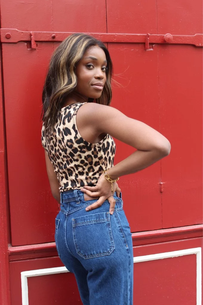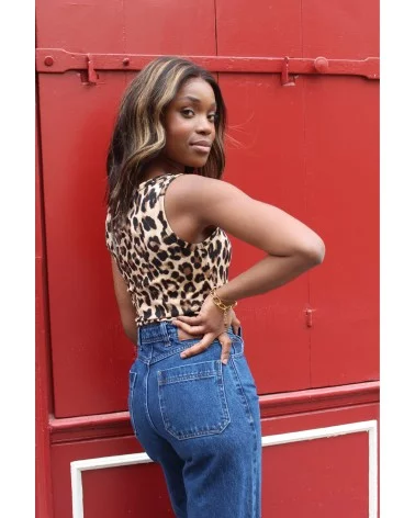 Le top Amazonia, c’est l’alliance parfaite entre audace et simplicité. Son imprimé léopard iconique et sa coupe près du corps en font une pièce forte, facile à porter au quotidien comme pour un look plus pointu. Confortable grâce à sa matière côtelée, il se glisse à merveille dans un jean taille haute pour une silhouette urbaine, sauvage et assumée. À mixer avec de l’or pour un contraste sophistiqué.